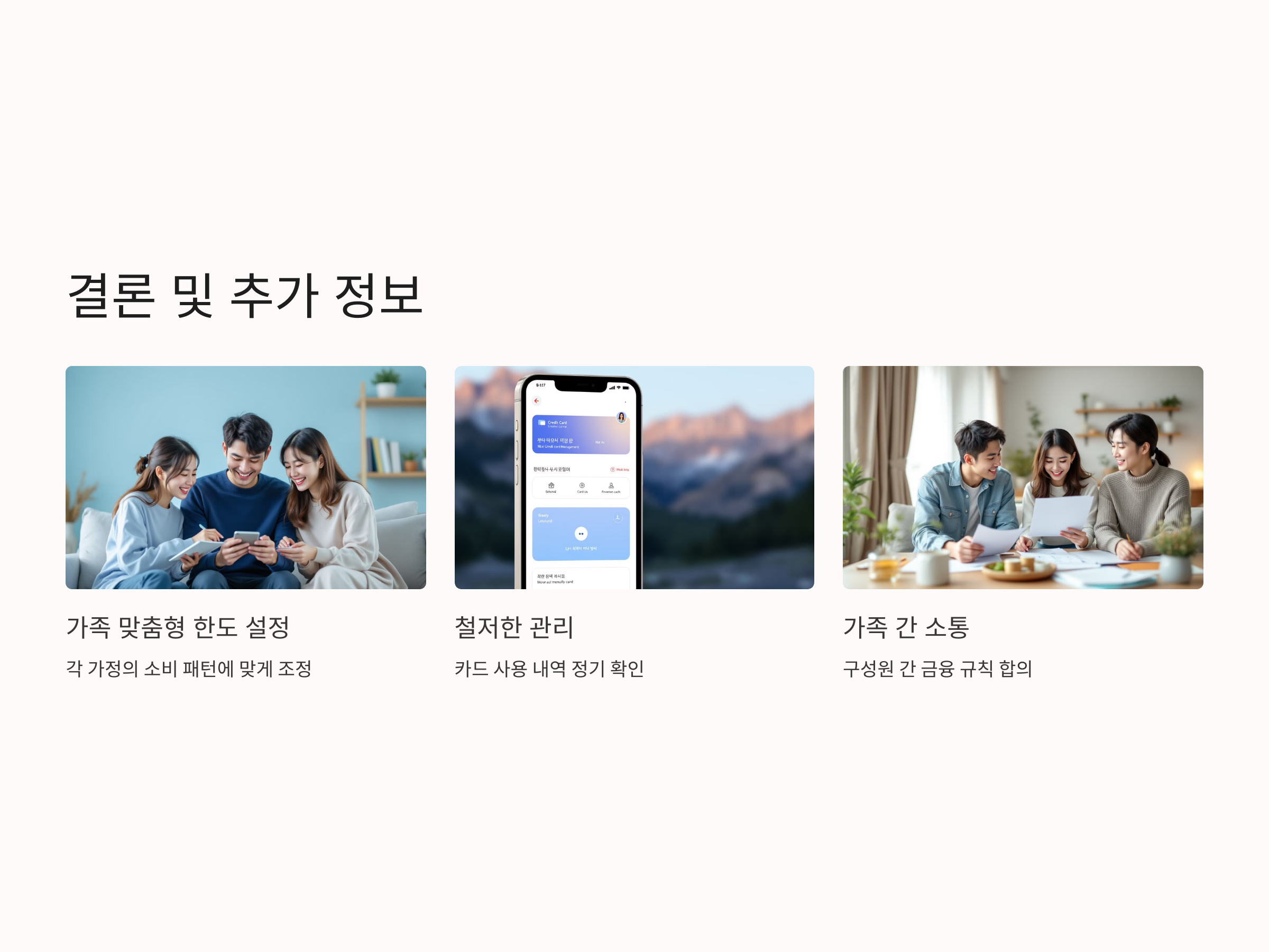 가족카드 한도를 조정하는 것은 가족의 경제적 부담을 줄이고, 효율적인 소비를 도울 수 있는 중요한 방법입니다. 각 가정의 소비 패턴에 맞춰 적절한 한도를 설정하고, 카드 사용 내역을 철저히 관리한다면, 가계 경제에 큰 도움이 될 것입니다. 한도 조정은 카드사의 정책을 잘 이해하고, 가족 구성원 간의 소통을 통해 이루어져야 하며, 과도한 소비를 방지하는 데 필수적인 요소입니다. 가족카드를 잘 활용해 보세요!