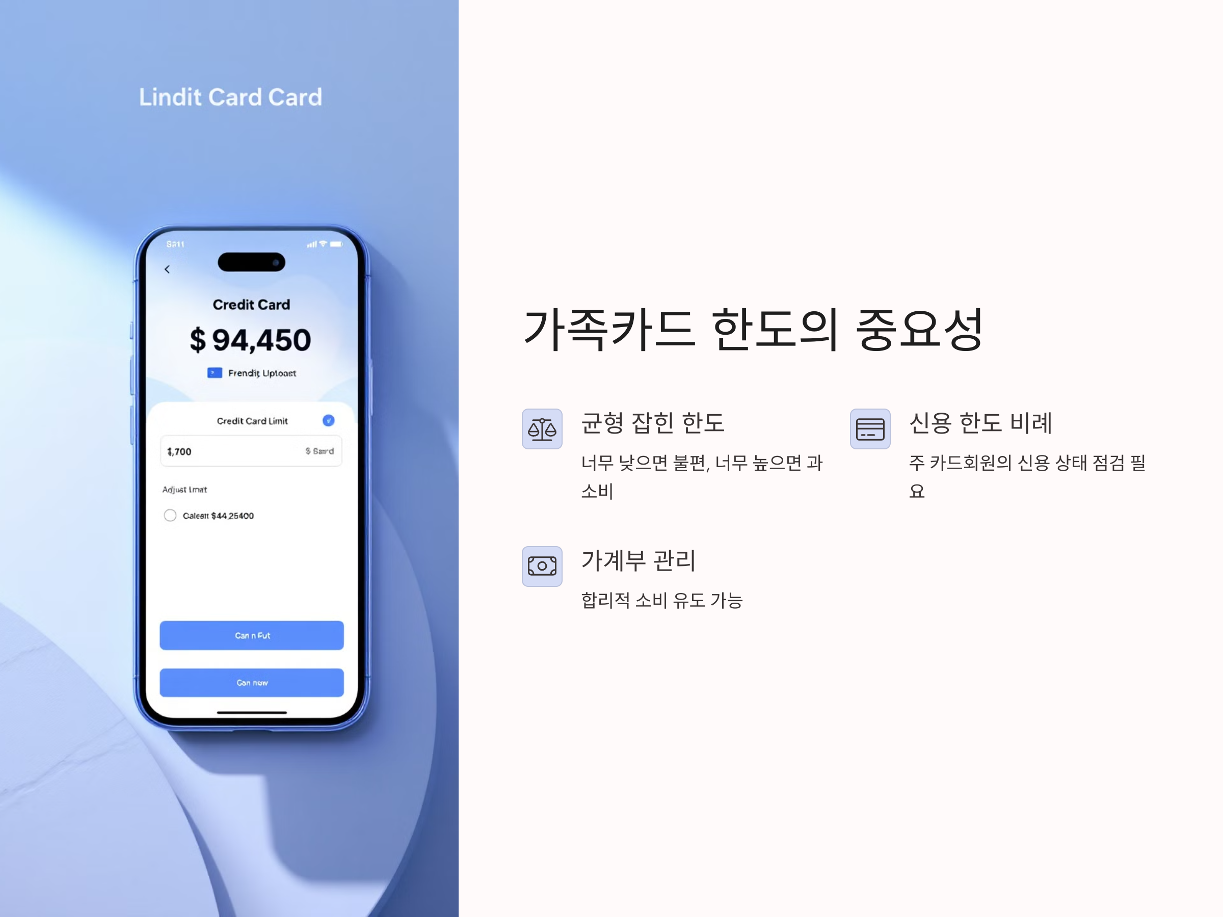 가족카드 한도를 조정할 때 고려해야 할 가장 중요한 사항은 가족 구성원의 소비 성향입니다. 예를 들어, 자녀가 있는 가정이라면 자녀들의 소비 패턴을 예측하여 적정 한도를 설정하는 것이 필요합니다. 또한, 주 카드회원의 소비 패턴에 따라 한도를 유연하게 조정할 수 있어야 합니다. 너무 높은 한도를 설정하면 자칫 지나치게 소비를 유도할 수 있기 때문에, 실질적인 필요에 맞춰 한도를 설정하는 것이 중요합니다.