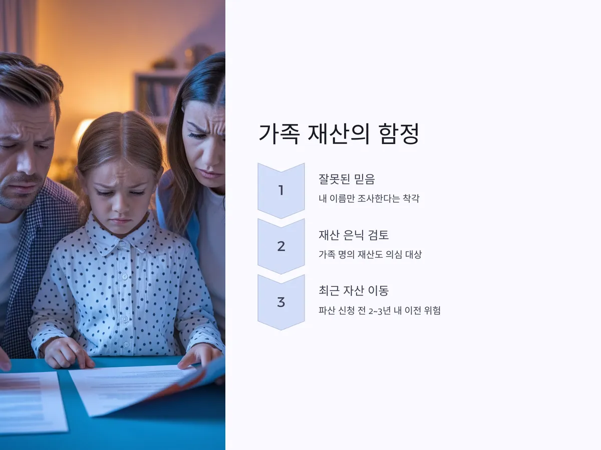 최근에는 미성년 자녀 명의로 된 부동산이나 계좌도 파산 심사 대상에 오르고 있습니다. 특히 부모가 자녀 이름으로 통장 개설 후 일정 금액을 입금하는 행위는 ‘편법 증여’ 또는 ‘재산 은닉’으로 간주될 수 있어 매우 주의해야 합니다.