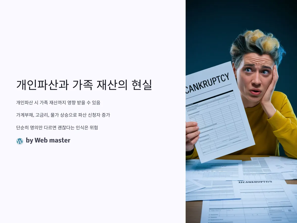 개인파산을 고려하거나 진행 중인 이들에게 가장 두려운 질문은 "이게 가족에게까지 영향을 미칠까?"라는 점입니다. 최근 들어 가계부채 증가, 고금리, 물가 상승으로 인해 개인파산 신청자가 크게 증가하고 있으며, 실제로 대법원 판례와 실무에서도 가족 재산 분리 원칙과 예외 사례가 계속해서 등장하고 있습니다. 특히 배우자 명의 부동산이나 자녀 명의의 계좌가 의심을 받는 경우도 적지 않아, 단순히 “명의만 다르면 괜찮다”는 인식은 매우 위험합니다.
