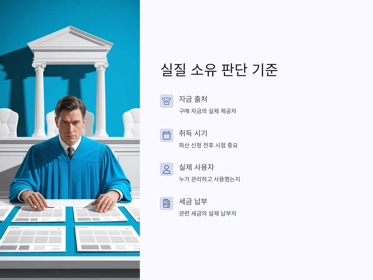 법적으로 개인파산 시 가장 중요한 개념은 ‘실질 소유자’입니다. 이는 해당 재산이 형식상 누구 명의로 되어 있든, 실제로 누구 돈으로 구입했는지, 누가 사용했는지를 기준으로 판단합니다. 이에 따라 명의를 가족에게 돌려놨더라도 ‘실질적으로 채무자 소유’로 인정되면 압류 대상이 될 수 있습니다.