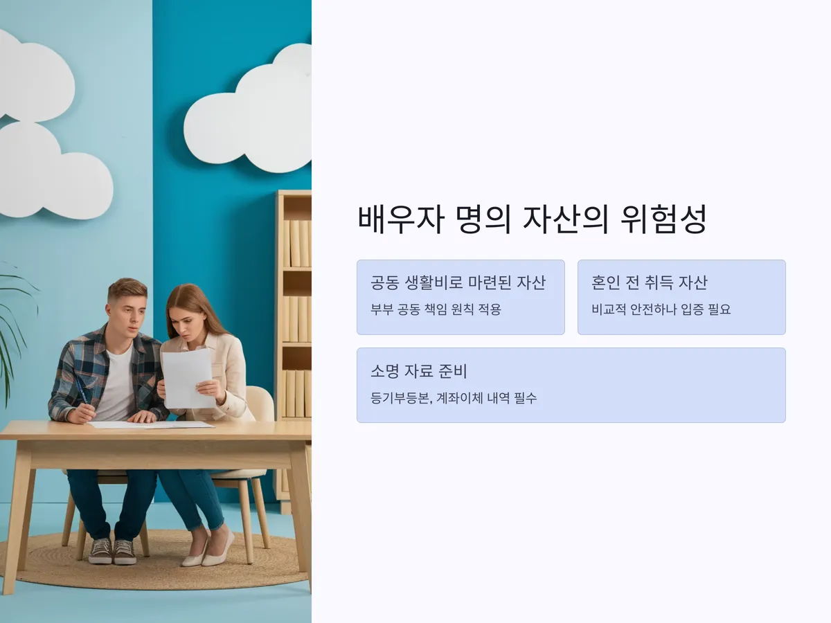 반면 혼인 전에 취득한 배우자 명의 자산이라면, 비교적 안전할 수 있습니다. 이 경우 입증 책임은 파산자가 아닌 배우자 측에 있기에 관련 소명 자료를 준비하는 것이 매우 중요합니다. 등기부등본, 계좌이체 내역, 증여계약서 등이 이에 해당하며, 변호사의 도움을 받아 서류를 체계적으로 정리해야만 압류 방지 가능성이 높아집니다.