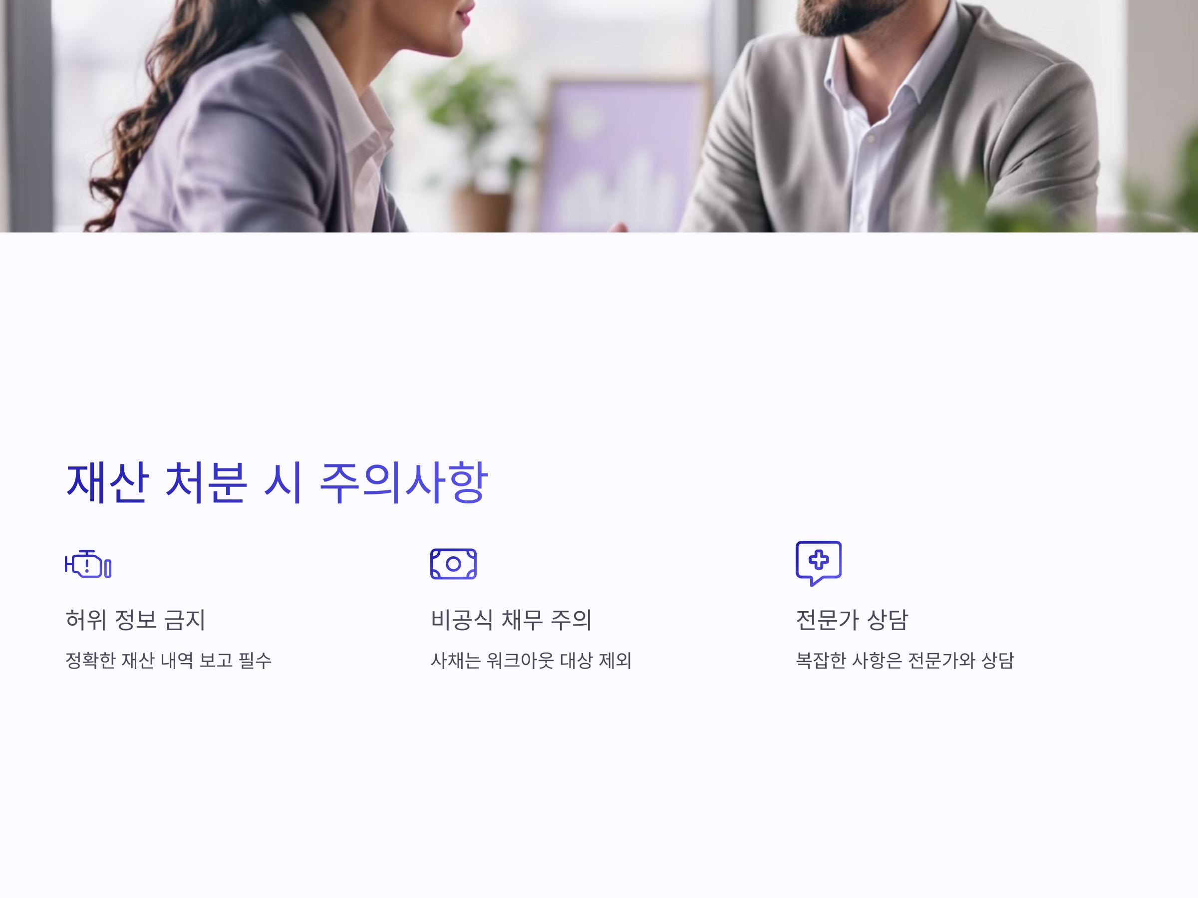 - 비공식 채무 주의: 사채나 비공식적인 채무는 개인워크아웃 대상에서 제외되므로, 이러한 채무 상환을 위한 재산 처분은 신중해야 합니다.