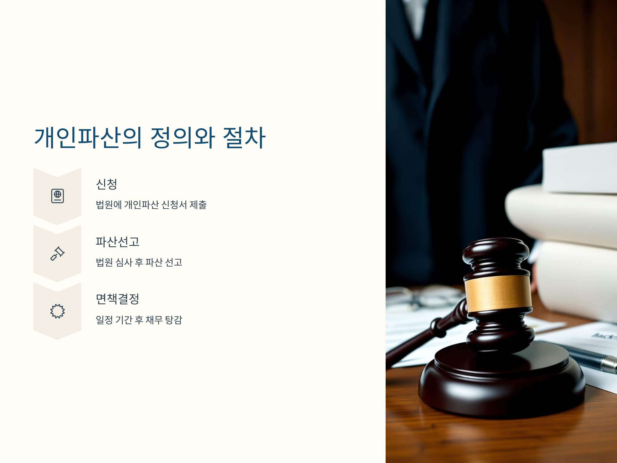 - 신청: 채무자는 법원에 개인파산 신청서를 제출하고, 법원은 이를 심사합니다.