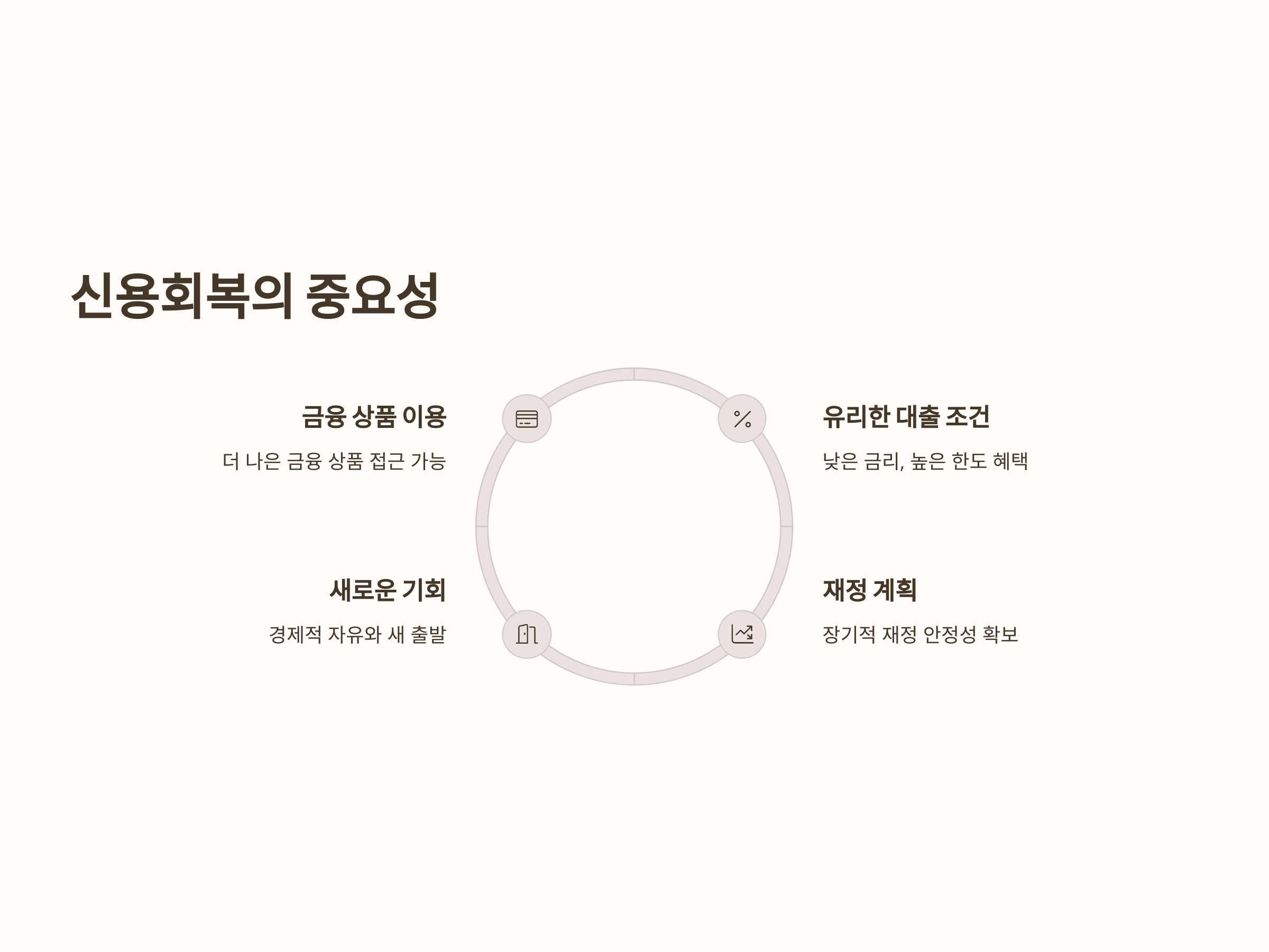 신용 회복을 통해 더 나은 재정 상태로 나아갈 수 있으며, 새로운 기회를 얻을 수 있습니다. 신용 회복은 단기적인 목표가 아니라, 장기적인 재정적 안정성을 위한 중요한 과정임을 잊지 말아야 합니다.