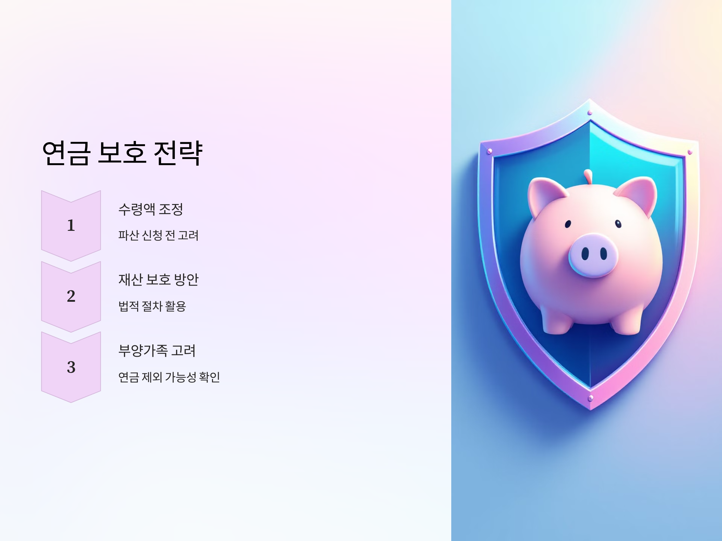 만약 연금 보호를 원한다면, 파산 신청 전에 연금 수령액을 조정하거나, 재산 보호 방안을 고려할 수 있습니다. 예를 들어, 부양가족이 많은 경우나, 기초생활수급자로 등록되어 있는 경우, 연금 수령액을 제외하거나 적게 받을 수 있는 경우가 있습니다. 이러한 전략은 법적인 절차를 통해 연금 보호를 받을 수 있도록 도와줍니다.