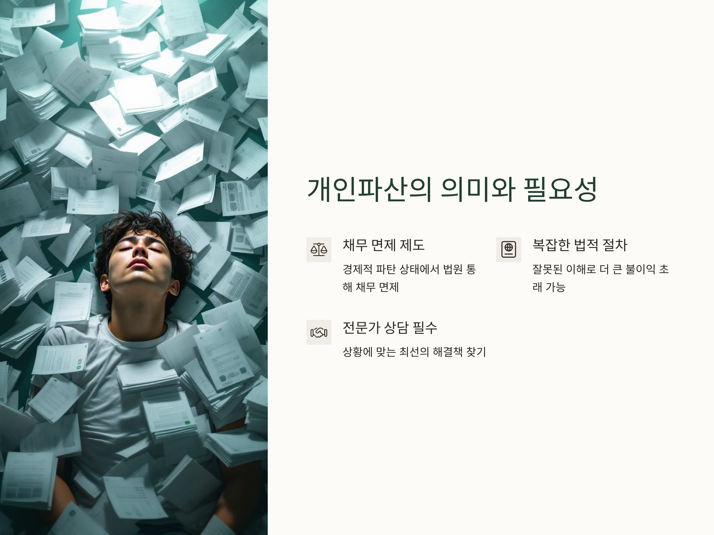 개인파산을 신청하기 전에 반드시 파산 변호사와 상담을 통해 자신의 상황에 맞는 최선의 해결책을 찾는 것이 필요합니다. 법적인 절차를 제대로 따르지 않으면, 다시 경제적 어려움을 겪을 수 있기 때문에, 파산 변호사의 조언을 받는 것이 중요한 이유입니다.