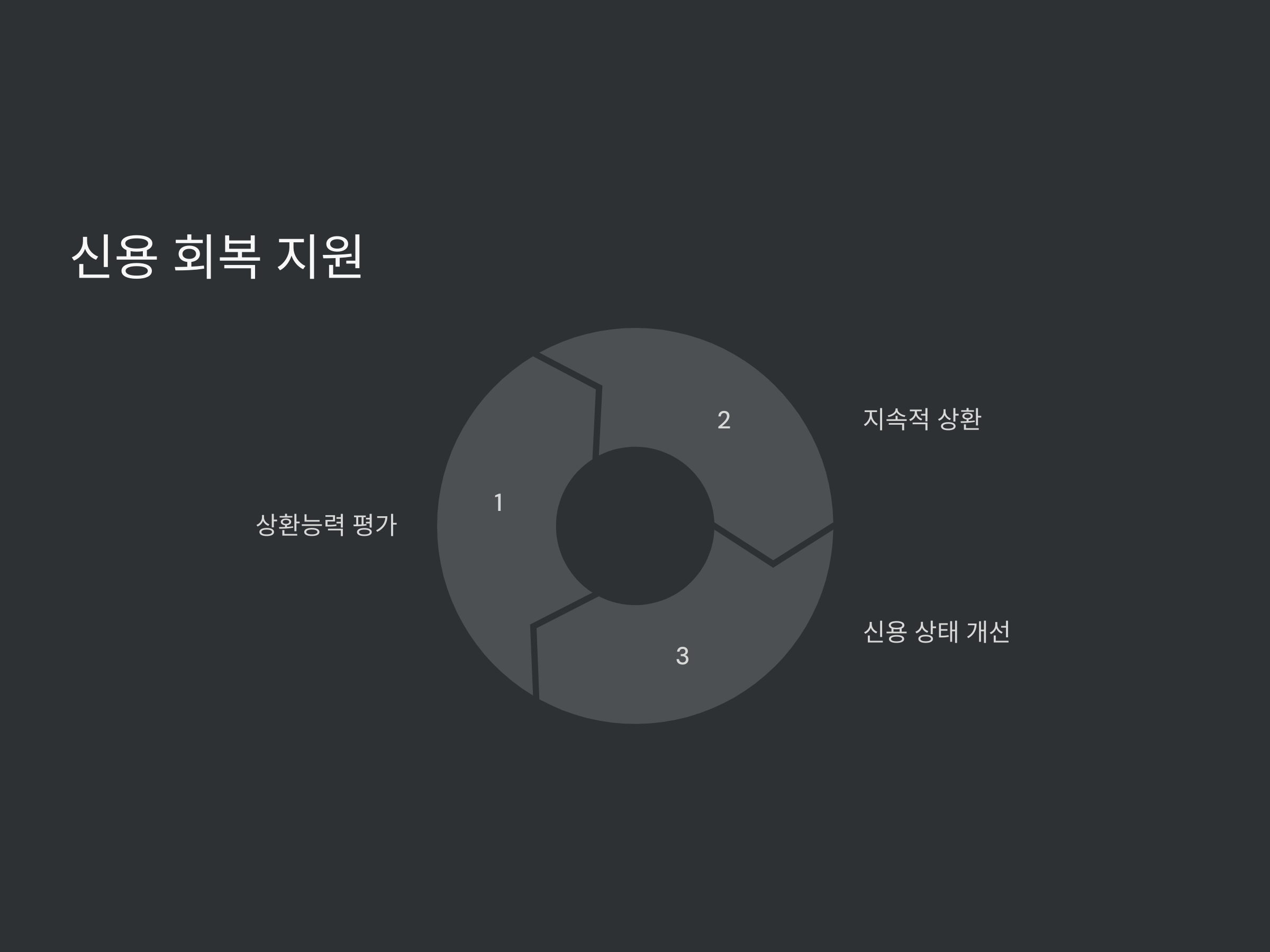신용 회복 절차는 주로 상환 능력 평가 후 신용회복위원회에서 제공하는 방법으로 이루어집니다. 일정 기간 동안 성실히 채무를 갚으면, 신용 점수가 개선되고 금융 거래에 제한이 적어지게 됩니다.