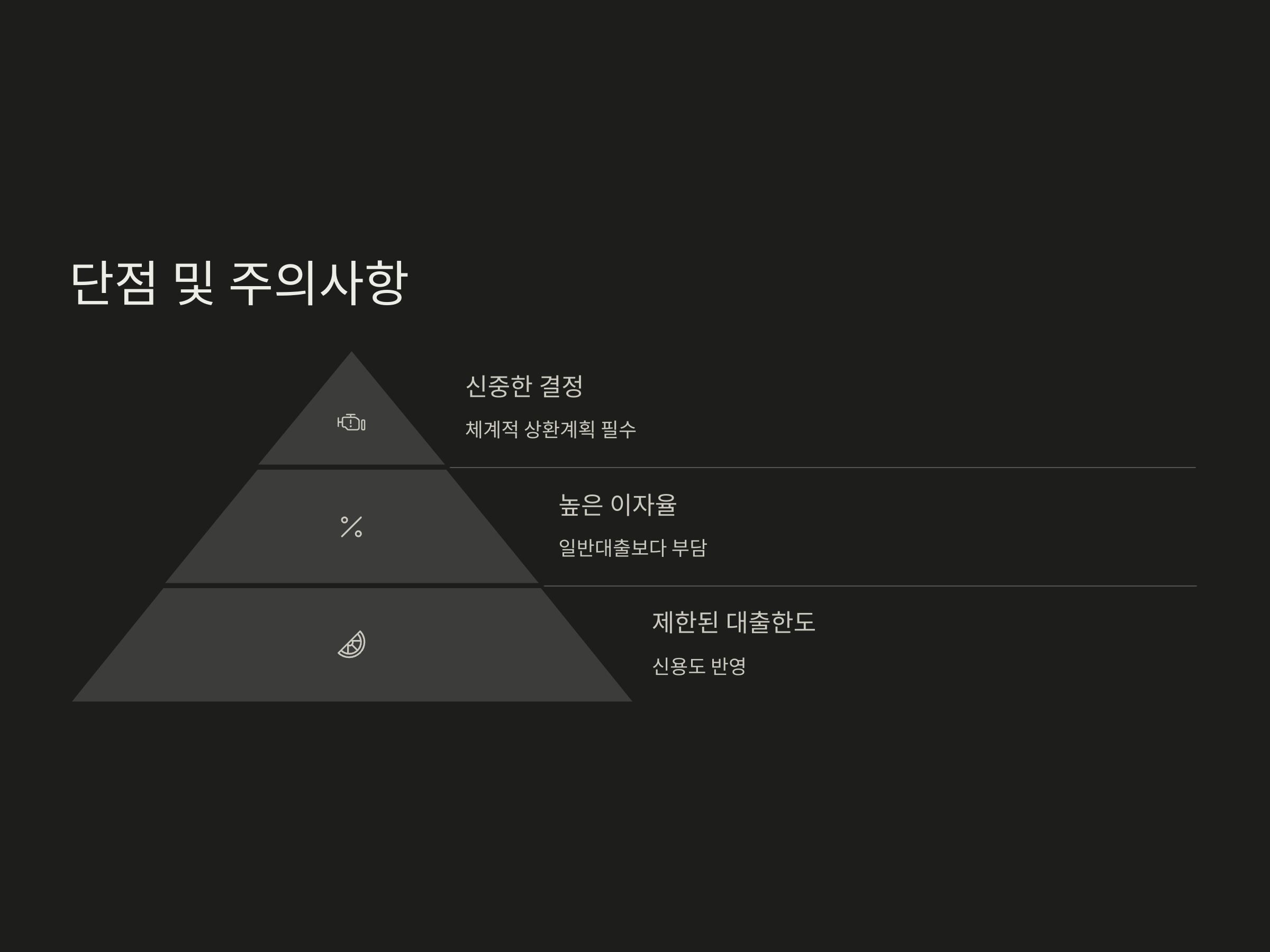 개인파산자대출의 가장 큰 단점은 높은 이자율과 제한된 대출 한도입니다. 신용이 낮은 상태에서 대출을 받기 때문에 일반적인 대출보다 이자율이 높을 수 있습니다. 이는 금융 기관이 대출자의 신용을 높게 평가하지 않기 때문에 발생하는 현상입니다.