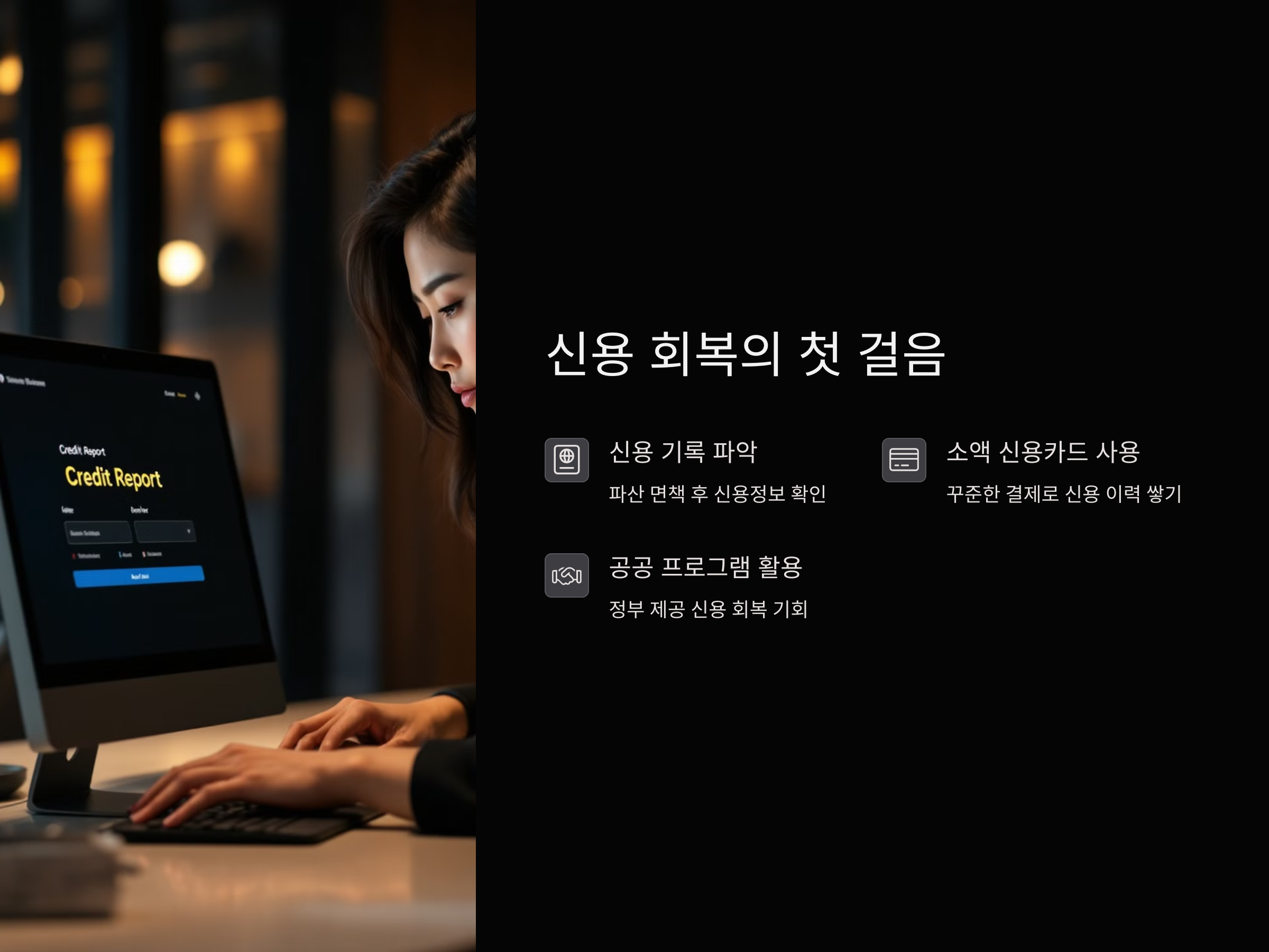 신용을 회복하려면 시간이 걸리지만, 위의 방법들을 차근차근 실천하다 보면 파산 후에도 재정적 자유를 되찾을 수 있습니다.