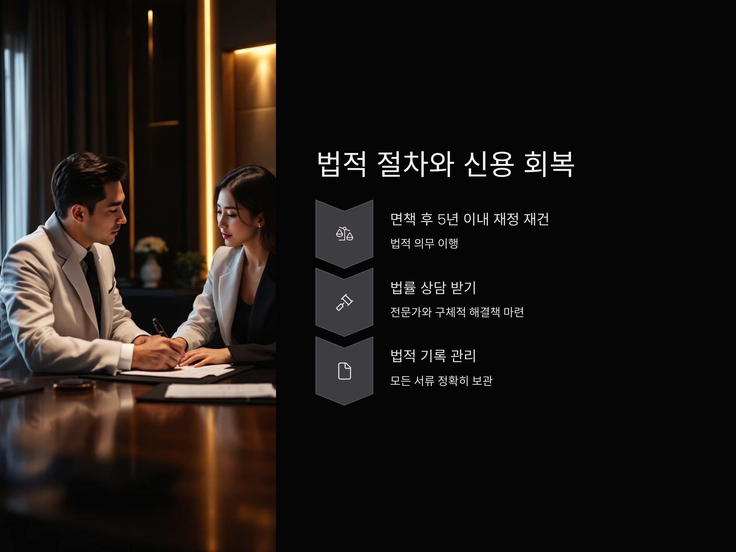 파산 후 신용을 회복하려면 법적인 절차를 따르는 것이 중요합니다. 법적인 절차는 복잡할 수 있지만, 이를 올바르게 이해하고 진행하는 것이 핵심입니다.