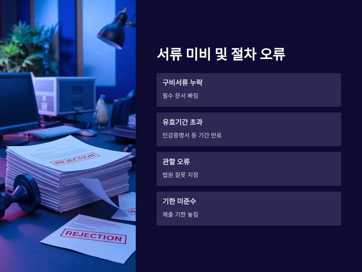 가장 안타까운 기각사유 중 하나는 단순한 서류 미비입니다. 구비서류가 빠져 있거나, 인감증명서 등 필수 문서의 유효기간이 초과된 경우 기각될 수 있으며, 사실관계 확인이 불가할 때도 마찬가지입니다.