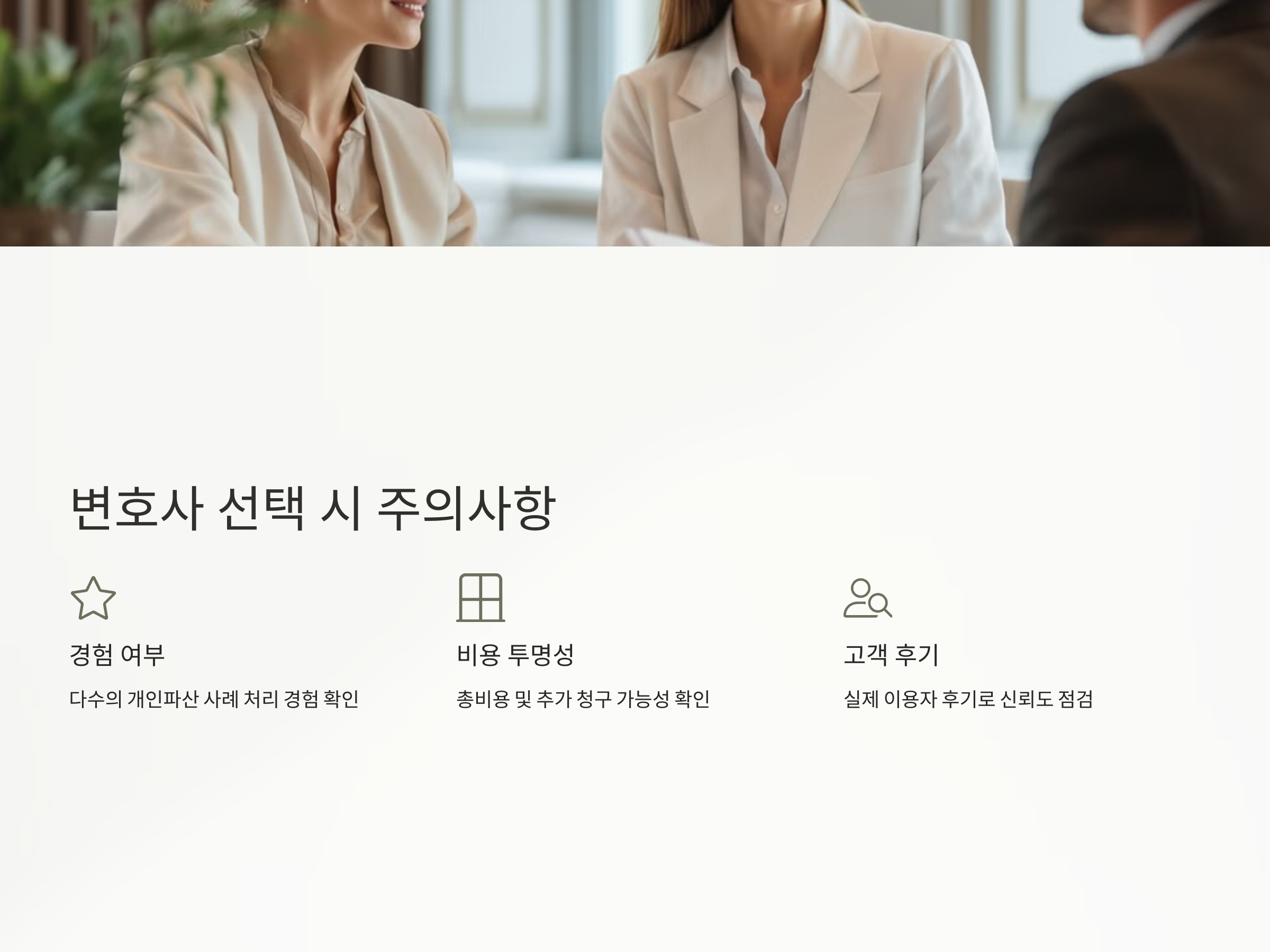 - 개인파산 및 면책 사례를 다수 처리한 경험이 있는 변호사를 선택하세요.