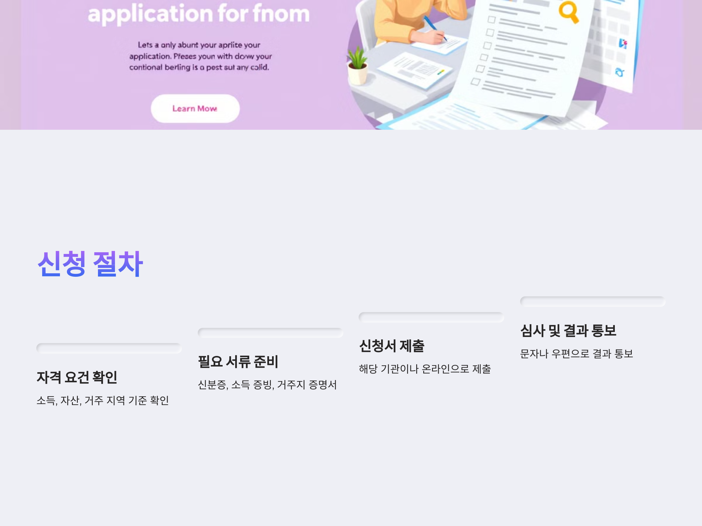 - 자격 요건 확인: 각 지원 제도마다 소득, 자산, 거주 지역 등의 기준이 있으므로, 해당 기관의 공식 웹사이트나 주민센터를 통해 자격 요건을 확인합니다.