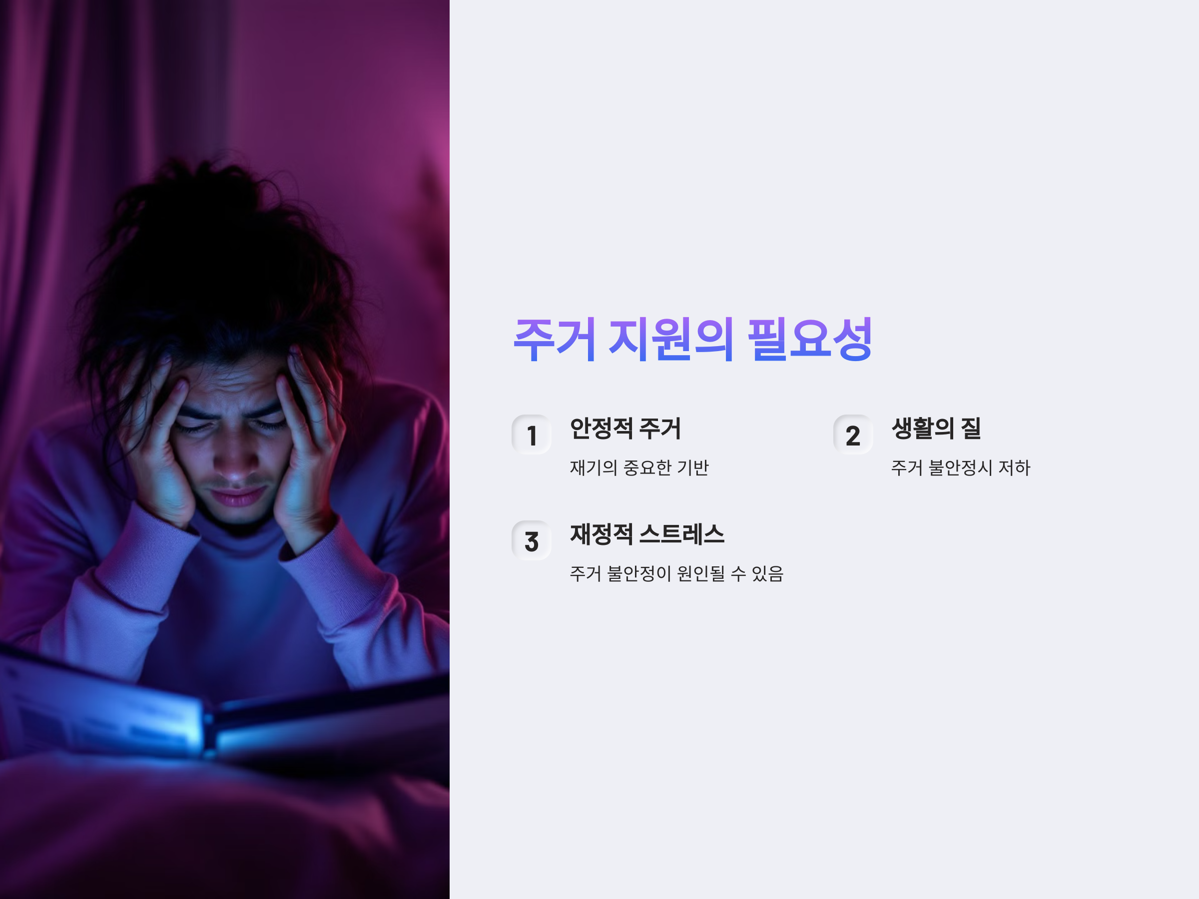 개인파산 면책을 받으면 채무에서 해방되지만, 동시에 경제적 재기의 출발선에 서게 됩니다. 이때 안정적인 주거 환경은 재기의 중요한 기반이 됩니다. 주거 불안정은 생활의 질을 저하시킬 뿐만 아니라, 재정적 스트레스의 원인이 될 수 있습니다. 따라서 개인파산 면책자들에게 주거 지원은 단순한 복지가 아닌, 재기의 필수 요소로 작용합니다.