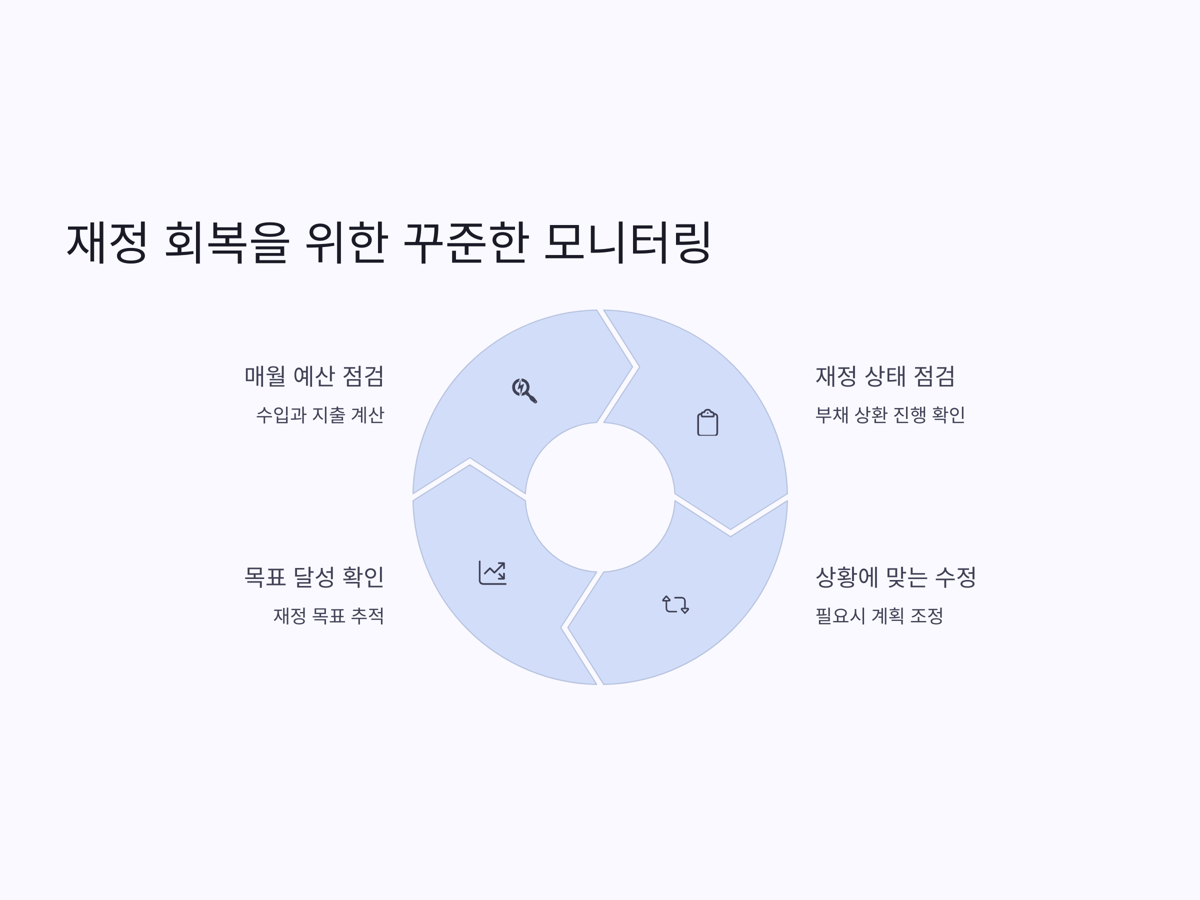 - 상황에 맞는 수정: 재정 상태가 악화되거나 목표 달성이 어려운 경우, 즉시 수정 계획을 세워 실천해 나가세요.