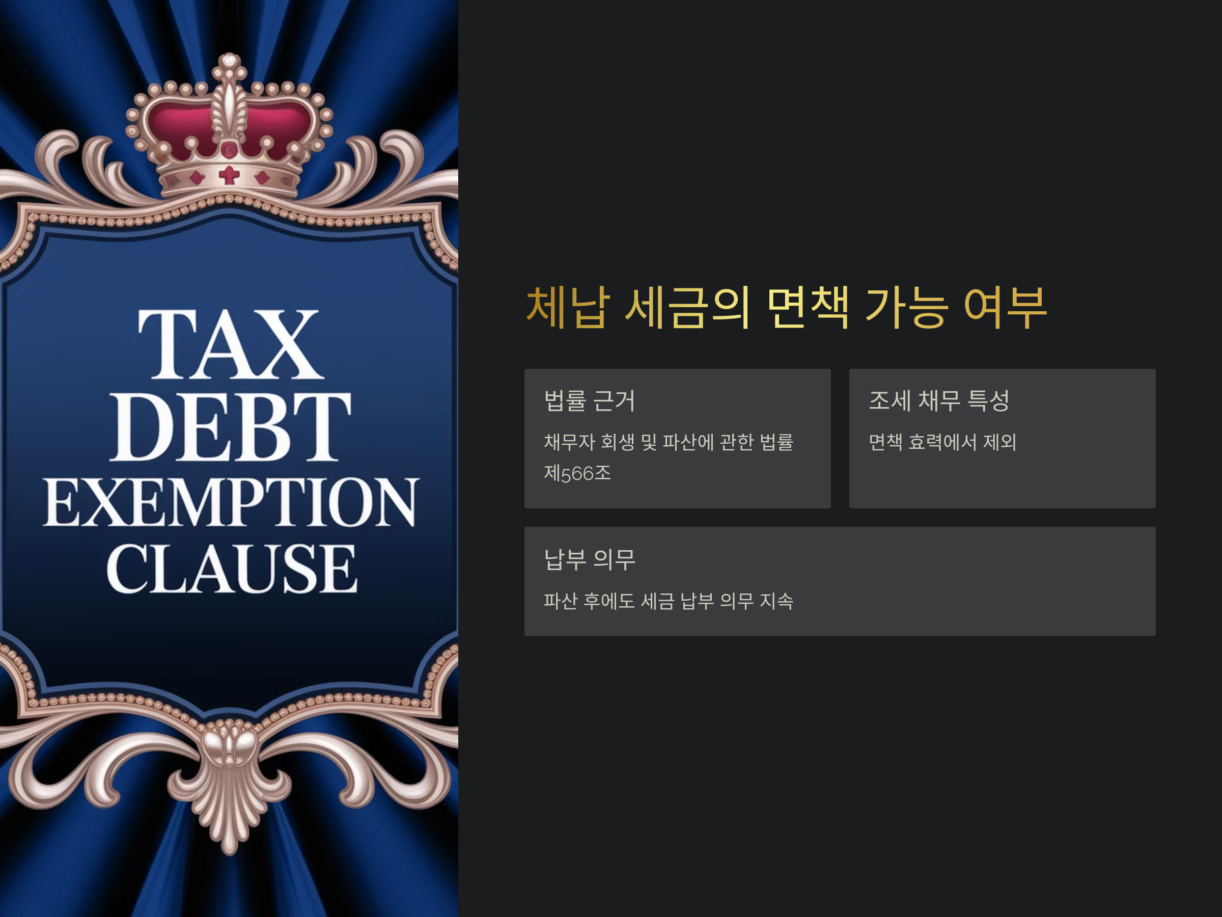 개인파산은 개인이 감당할 수 없는 채무를 법원의 판단을 통해 면책받는 절차입니다. 그러나 모든 채무가 면책 대상에 포함되는 것은 아닙니다. 특히, 체납된 세금은 파산 면책의 대상에서 제외되는 경우가 많습니다. 이는 국가의 재정 확보와 공평한 세금 부과를 보장하기 위한 조치로 이해할 수 있습니다.
