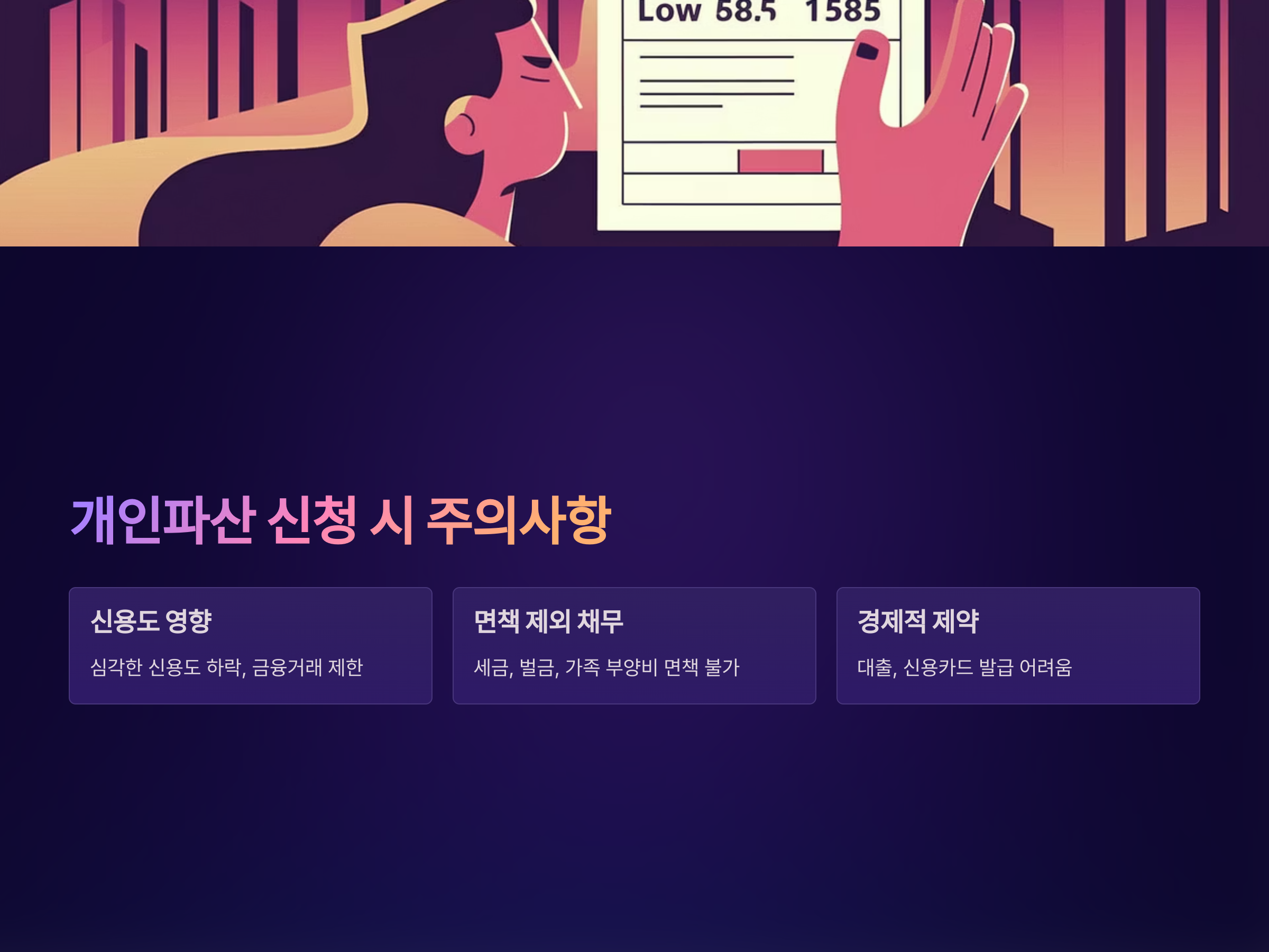 - 파산 후의 경제적 제약: 파산 후 일정 기간 동안 새로운 대출이나 신용카드를 발급받는 데 어려움이 있을 수 있습니다. 또한, 재정 회복이 어려운 경우도 존재합니다.