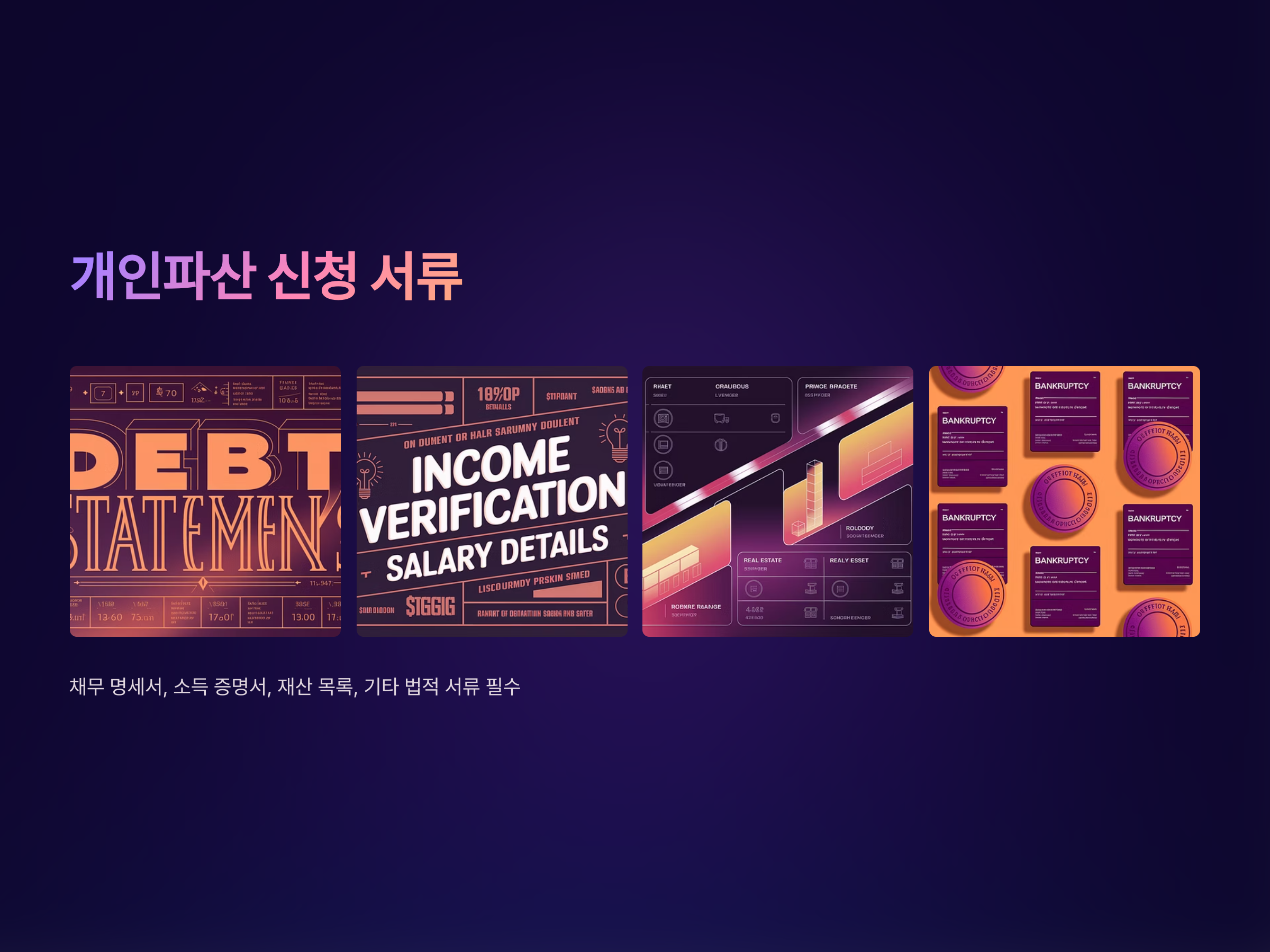 - 기타 법적 서류: 개인파산 신청을 위한 추가적인 법적 서류들이 요구될 수 있으며, 법원에서 필요한 서류를 안내해줍니다.
