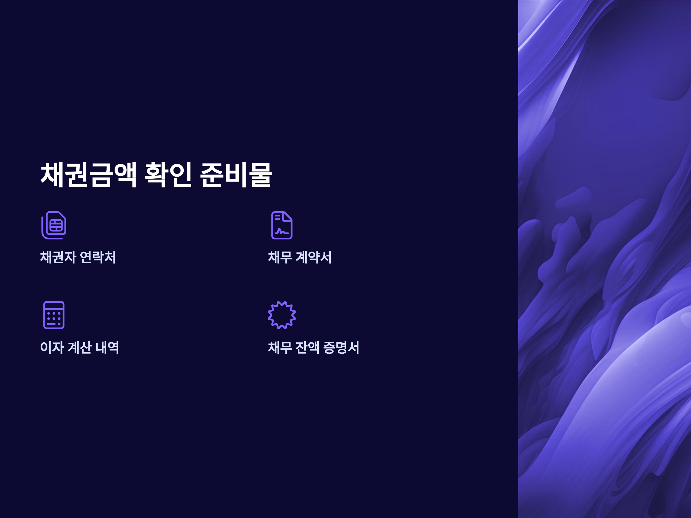 채권금액 확인을 위해 준비해야 할 자료는 다음과 같습니다: