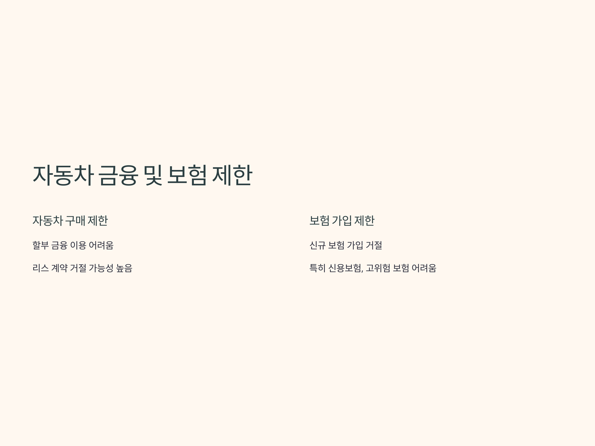 자동차를 구입하거나 리스를 이용하는 것 역시 개인파산 후에는 어려워질 수 있습니다. 자동차 구매 시 할부 금융을 이용하는 경우, 금융기관에서는 개인의 신용 상태를 철저하게 확인하게 됩니다. 파산 신청자의 경우, 이 신용 상태가 매우 낮게 평가되므로 할부나 리스를 통한 차량 구매가 거절될 가능성이 큽니다.