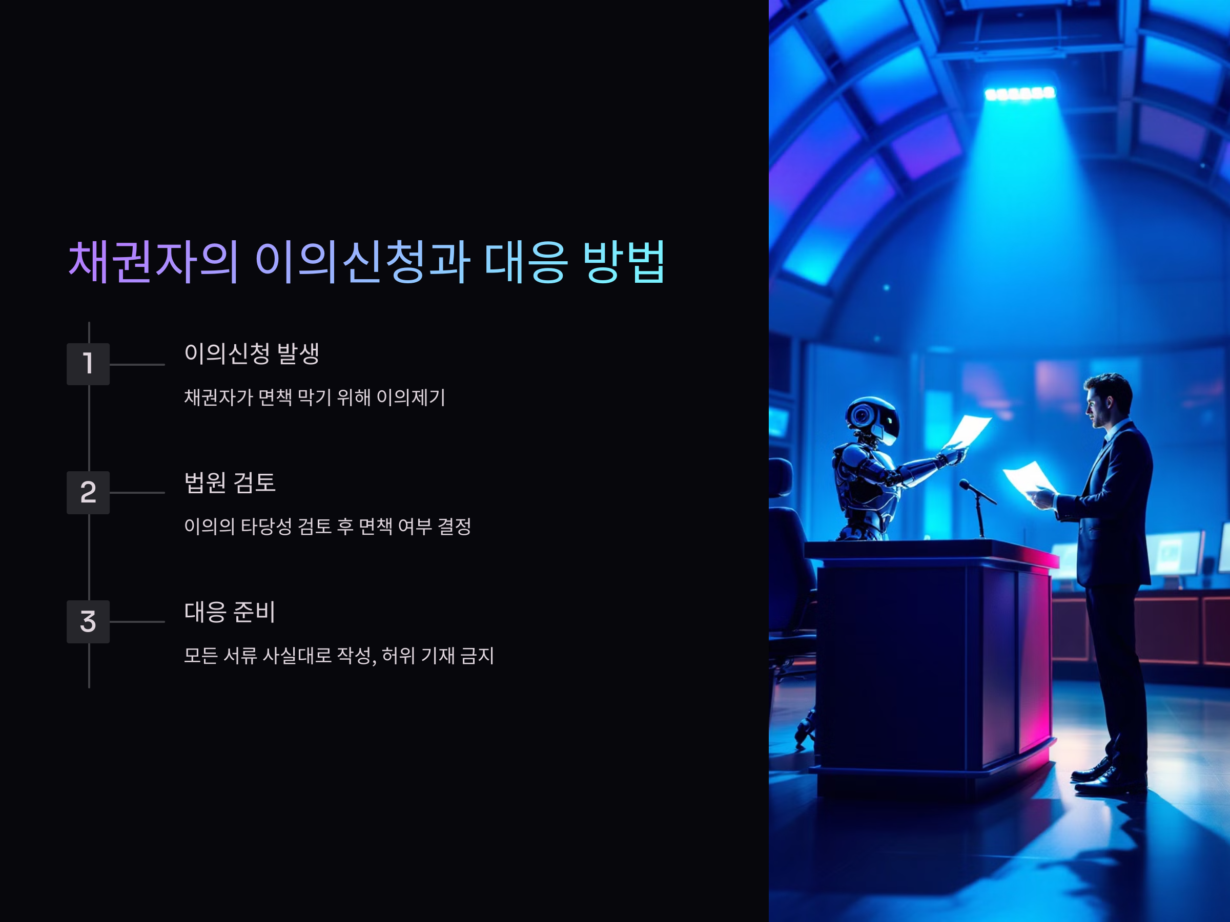 따라서 개인파산 절차를 진행할 때 모든 서류를 사실대로 정확히 작성하고, 허위로 꾸미지 않는 것이 가장 중요합니다. 또한, 채권자의 이의신청에 대응하기 위한 자료를 사전에 준비해 두는 것도 좋은 방법입니다.