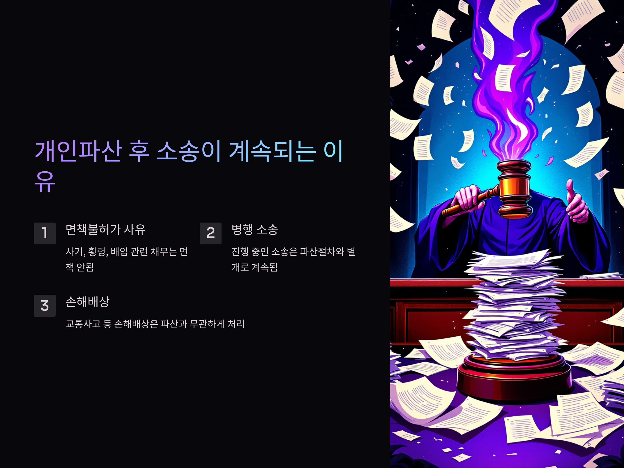 이 글에서는 개인파산 신청 후에도 소송 문제로부터 안전하게 벗어나는 방법, 꼭 알아야 할 핵심 정보, 그리고 예방책까지 상세하게 안내드릴 예정입니다. 이를 통해 파산 신청자들이 예상치 못한 소송 덫에 걸리지 않고, 법적 문제 없이 안정적인 재기를 할 수 있도록 돕겠습니다.
