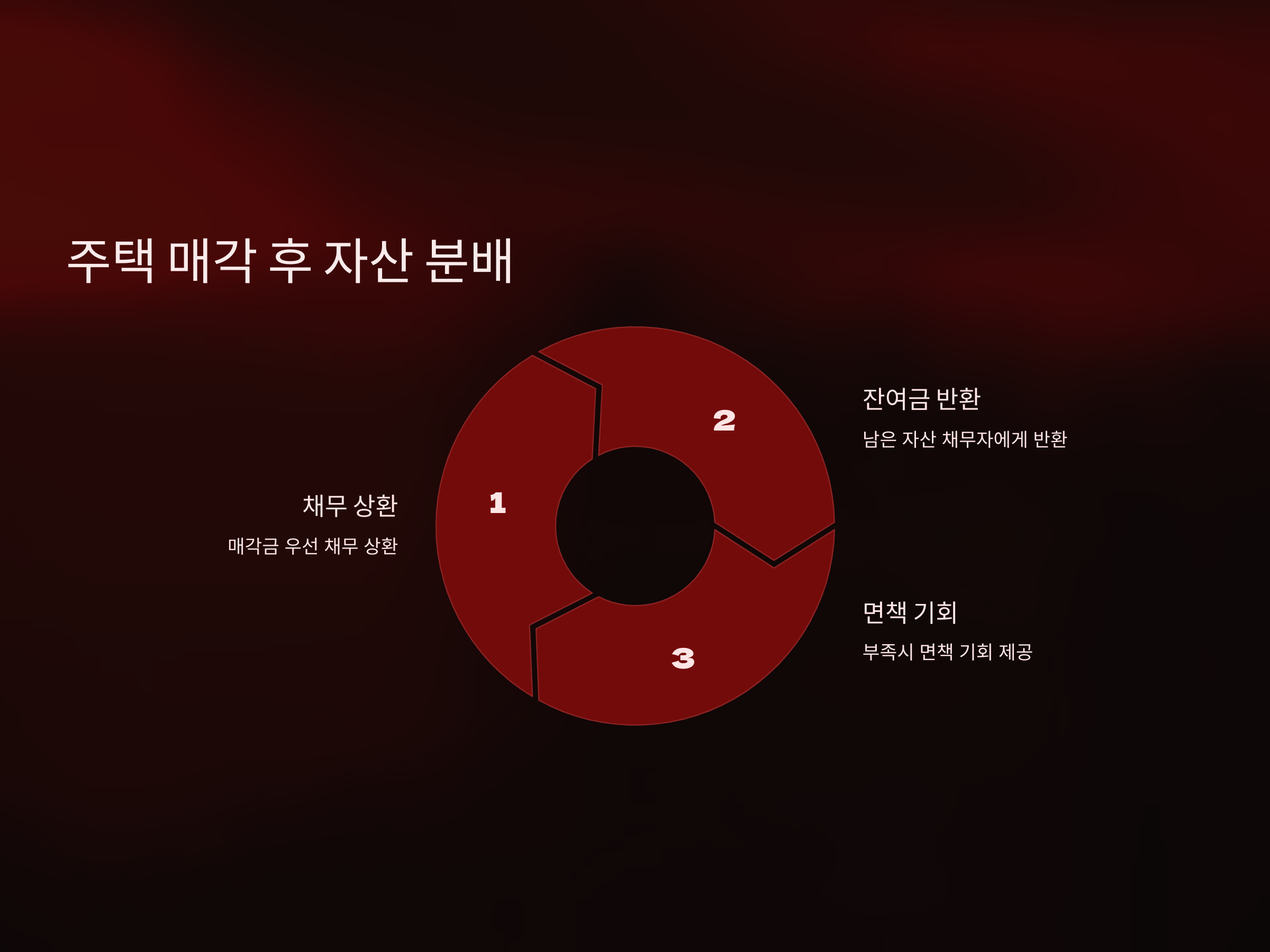 주택이 매각되면, 그 자산은 채무를 상환하는 데 사용됩니다. 매각을 통해 얻은 금액은 먼저 파산 절차에 포함된 채무를 상환하는 데 사용되며, 남은 자산은 채무자에게 돌아갈 수 있습니다. 그러나 매각 후에도 일부 채무가 남을 수 있으며, 이는 다른 자산을 통해 해결해야 할 수 있습니다. 주택 매각 후 남은 금액이 충분하지 않으면, 파산 절차를 통해 면책을 받을 수 있는 기회가 주어집니다.