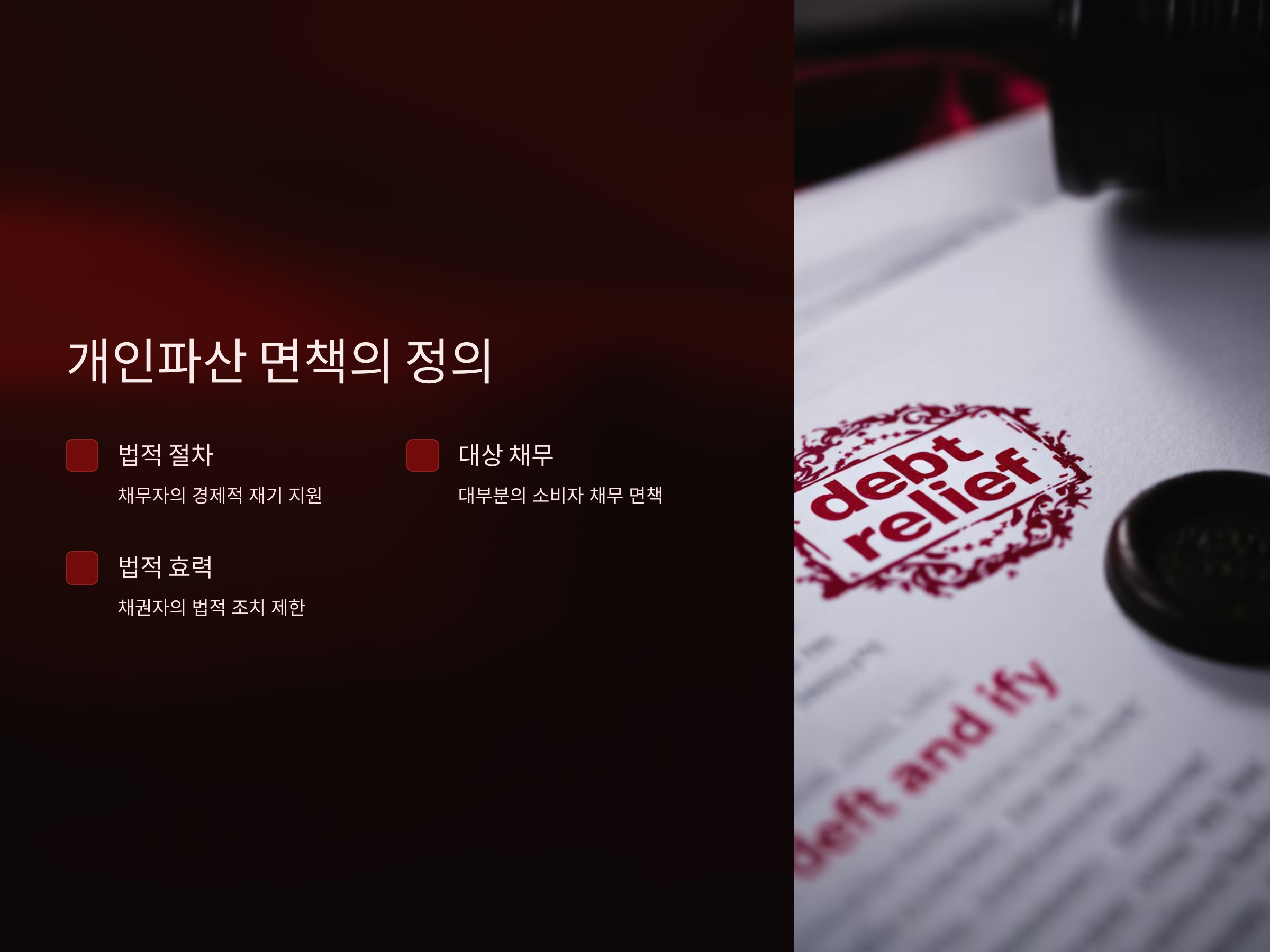 - 면책 제외 채무: 세금, 벌금, 손해배상 등은 여전히 책임이 남을 수 있습니다.