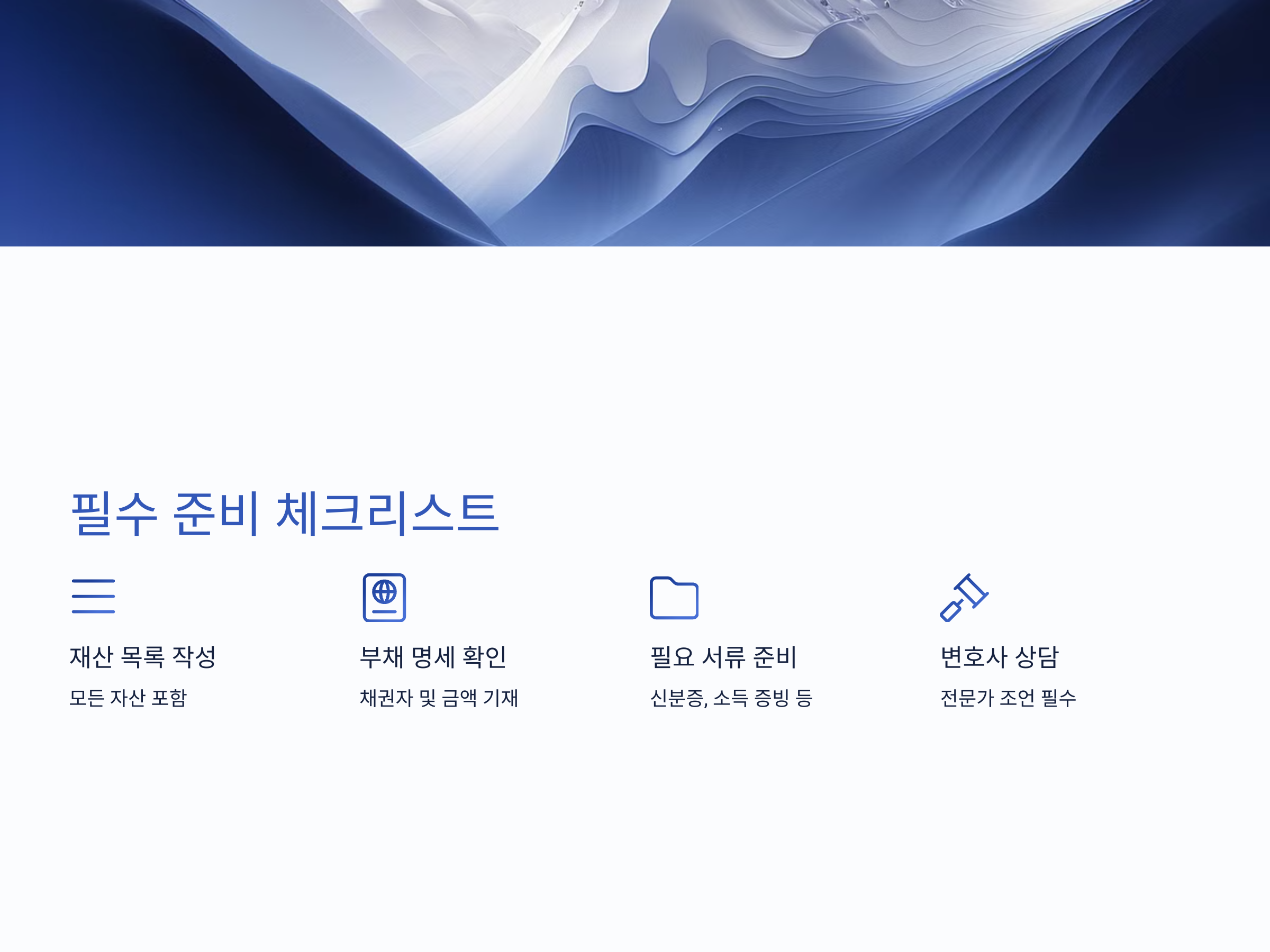 - 재산 목록 작성: 부동산, 차량, 금융 자산 등 모든 자산을 포함해야 합니다.