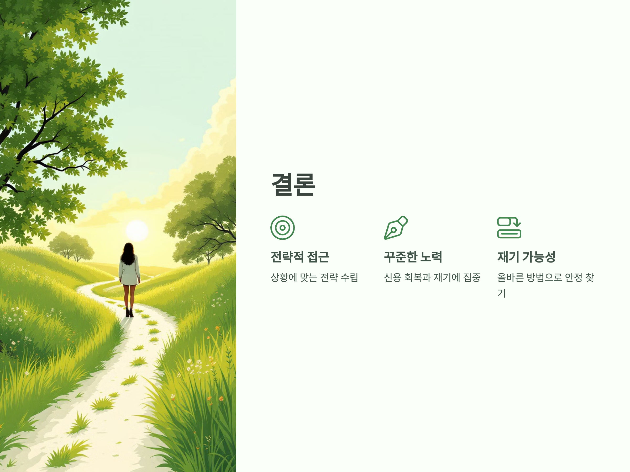 - 업종 선택 신중하게 하기: 금융권, 공공기관, 신용이 중요한 직종은 피하는 것이 좋습니다.