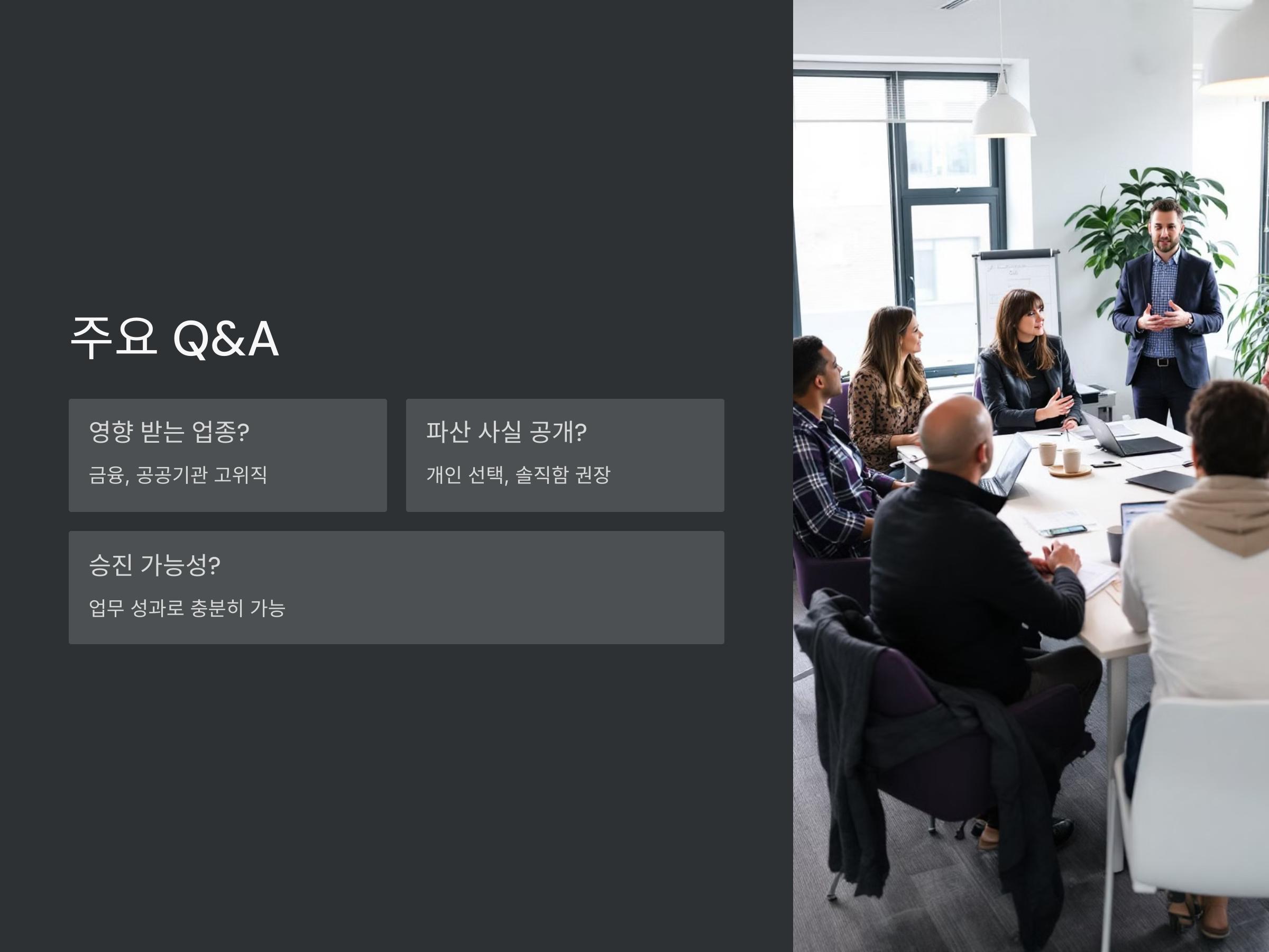 Q1: 개인파산 후 직장 승진에 영향을 미칠 수 있는 업종은 무엇인가요?