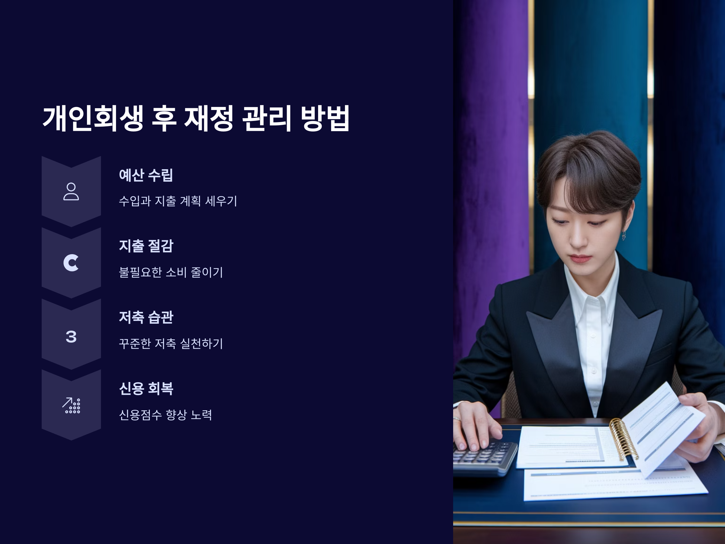 개인회생이 끝난 후에는 재정 관리를 철저히 하여 다시 어려운 상황에 빠지지 않도록 해야 합니다. 예산을 세우고, 불필요한 지출을 줄이며, 꾸준히 저축하는 것이 중요합니다.