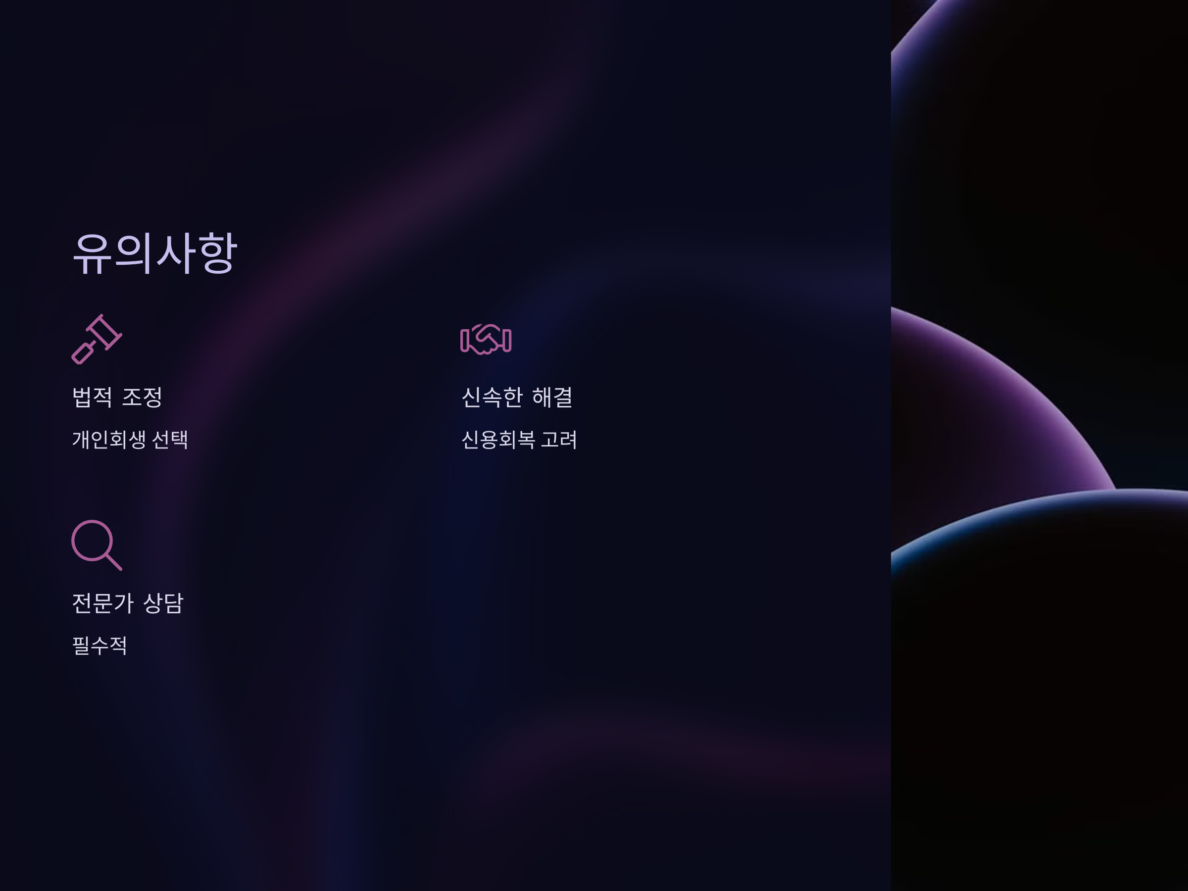 - 신용점수가 중요하다면: 신용회복을 통해 빠른 신용 점수 회복을 노릴 수 있습니다.