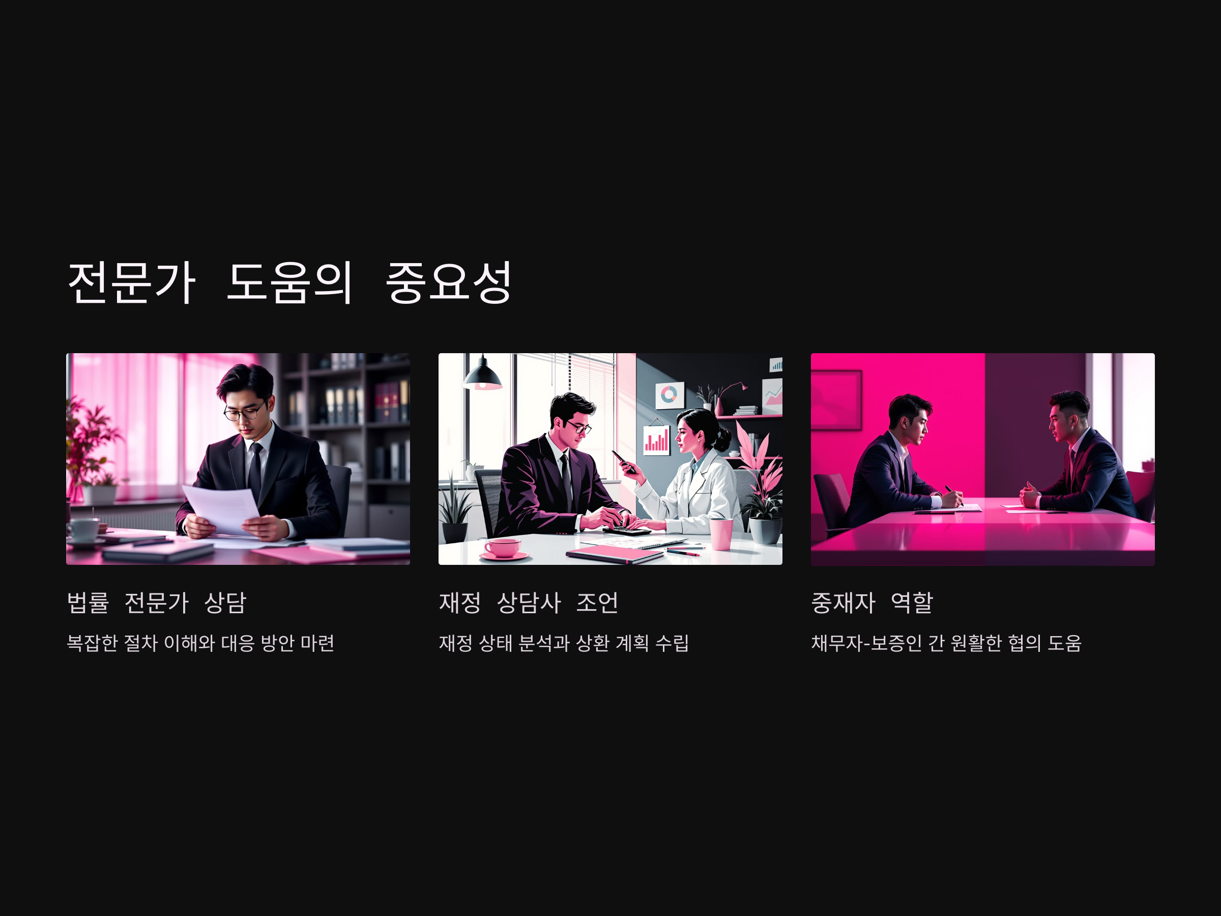 - 법적 조언 받기: 연대보증 채무가 복잡하게 얽혀 있을 경우, 개인회생 절차를 제대로 이해하고 신청할 수 있도록 변호사나 전문가에게 법적 조언을 받는 것이 중요합니다.