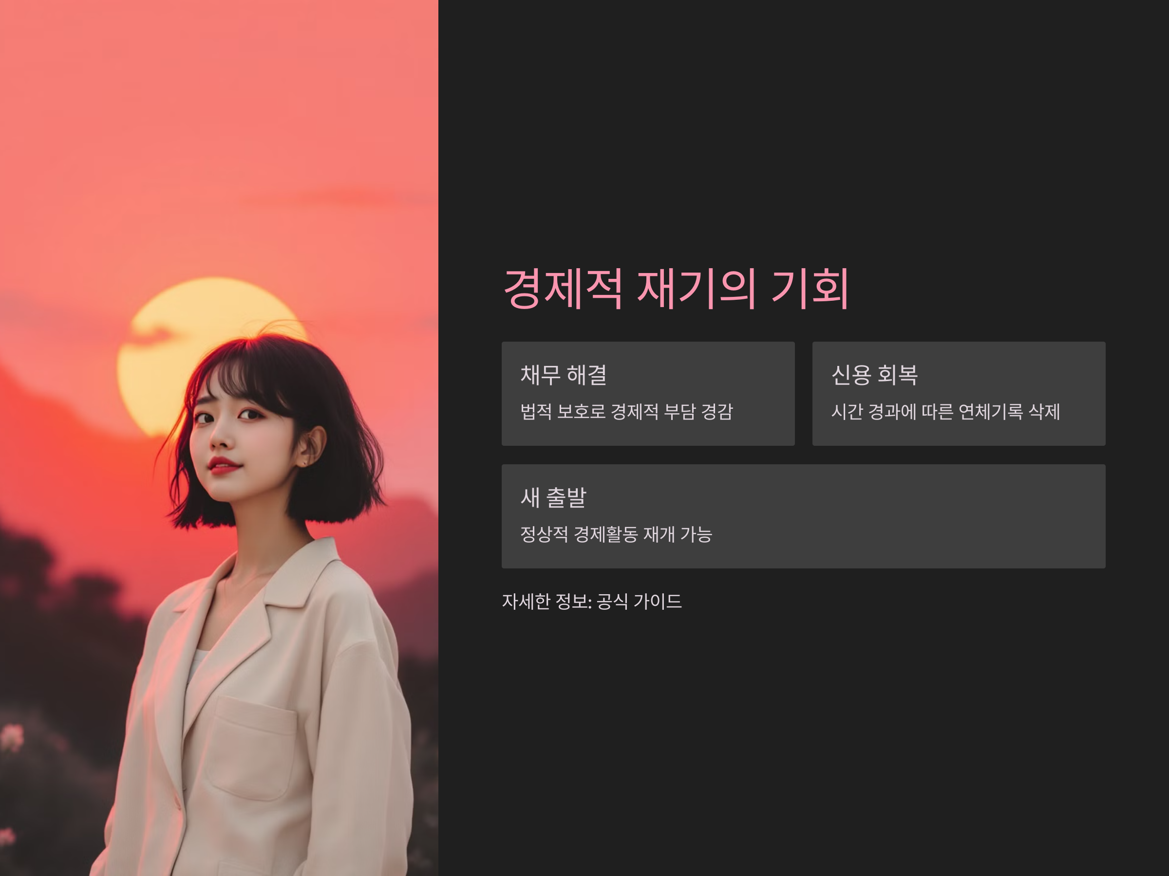 개인회생은 경제적으로 어려운 상황에 처한 사람들이 법원의 승인을 통해 채무를 재조정받고, 채무를 일부 탕감받거나 분할 상환할 수 있는 제도입니다. 채무자는 법원의 보호를 받아 채권자의 압박에서 벗어나 정상적인 경제 활동을 이어갈 수 있게 됩니다. 개인회생을 신청하기 위해서는 일정한 조건이 필요하며, 이 조건을 충족할 경우 법원이 회생 계획안을 승인합니다.