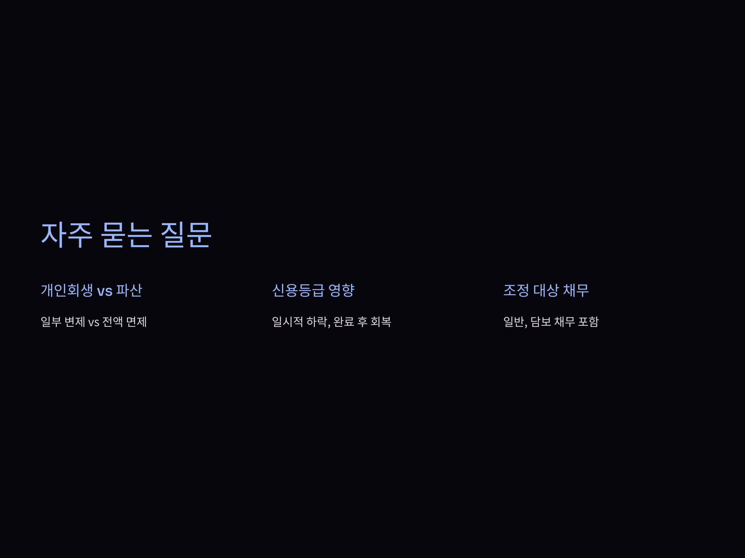 개인회생 중 신용등급은 낮아지지만, 변제 완료 후 점진적으로 회복됩니다.
