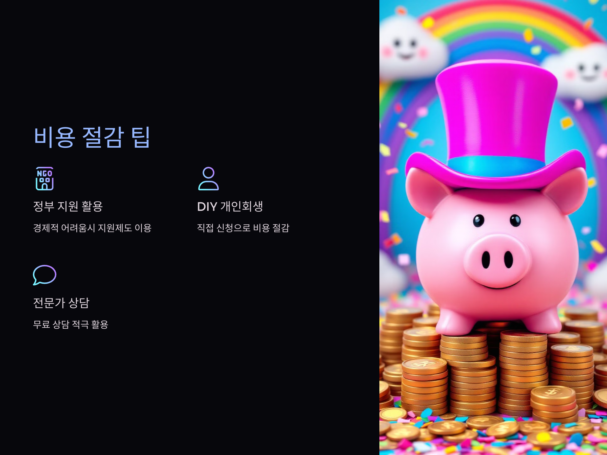 개인회생은 과도한 채무로 어려움을 겪는 분들이 새로운 시작을 할 수 있도록 돕는 제도입니다. 하지만 이를 진행하면서 소요되는 비용을 정확히 파악하지 못하면 재정적인 어려움이 더욱 가중될 수 있습니다. 이 글에서는 개인회생을 준비하는 데 드는 모든 비용을 세부적으로 정리하고, 관련 팁과 함께 효율적인 절차를 안내하겠습니다.