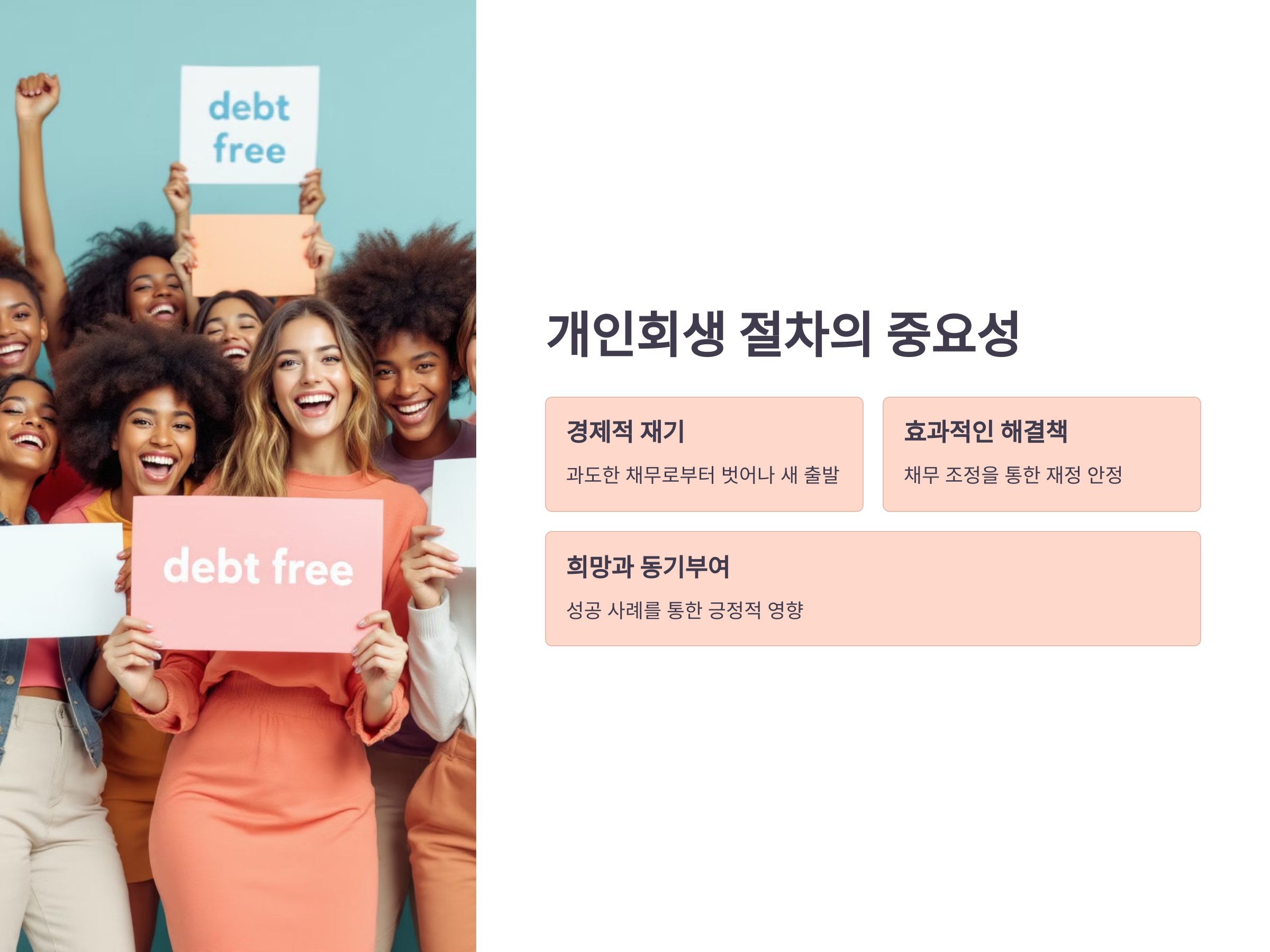 개인회생은 과도한 채무로 어려움을 겪는 분들에게 새로운 시작을 제공하는 법적 절차입니다. 최근 다양한 성공 사례를 통해 많은 분들이 경제적 안정을 되찾고 있습니다. 이러한 사례들은 채무로 고민하는 분들께 큰 희망과 동기부여가 될 수 있습니다.
