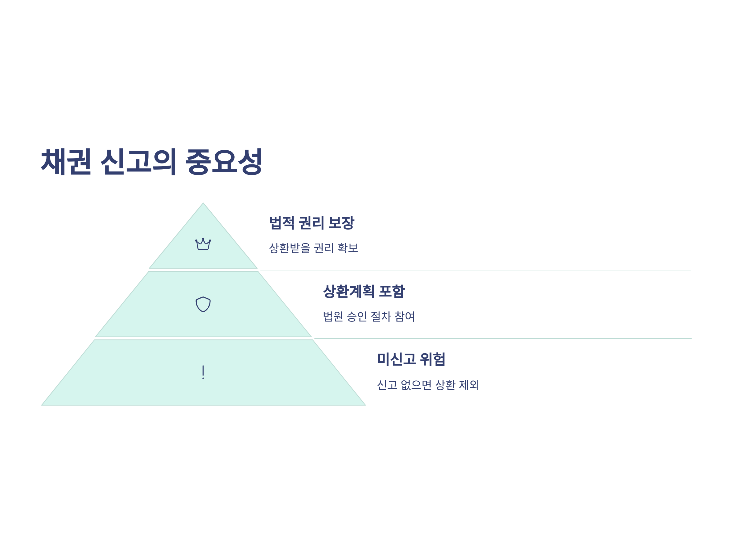 이와 함께, 채권자는 법원에서 정한 상환 조건을 수용할 의무가 있으므로, 채권 신고 시 충분히 준비하여 법적 권리를 보호해야 합니다.