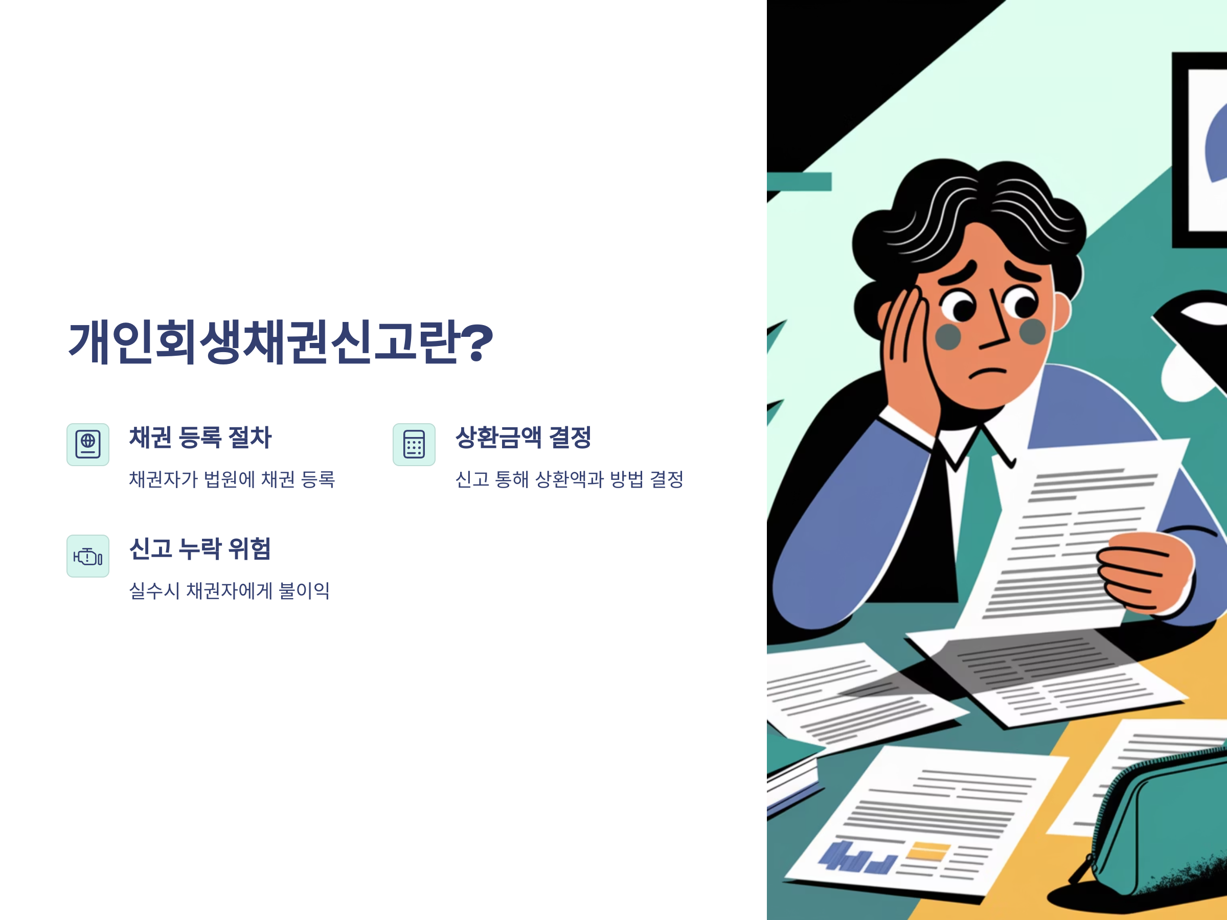 개인회생 절차가 시작되면, 채권자는 법원에 자신의 채권을 신고해야 하며, 이를 통해 자신이 받을 상환 금액과 상환 방법이 결정됩니다. 그러나 이 과정에서 실수를 하면 채권 신고가 누락되거나 잘못된 정보로 처리될 수 있어, 채권자에게는 큰 불이익이 될 수 있습니다. 따라서 개인회생채권신고의 절차와 이를 위한 준비 사항을 잘 숙지하는 것이 필수적입니다.