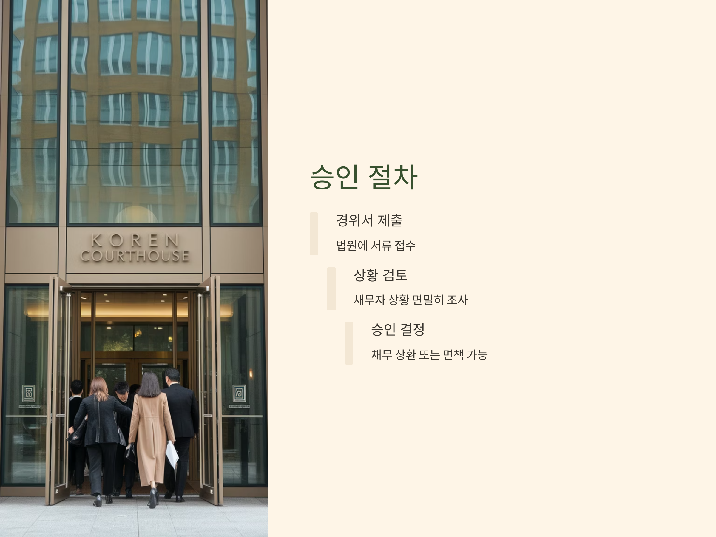 개인회생 경위서 작성이 끝난 후, 이를 법원에 제출하면 이후 승인 절차가 진행됩니다. 경위서에 따라 채무자의 상황을 면밀히 검토한 후, 법원은 개인회생의 승인 여부를 결정합니다. 승인되면, 채무자는 개인회생 절차에 따라 채무를 상환하거나 면책을 받을 수 있습니다.