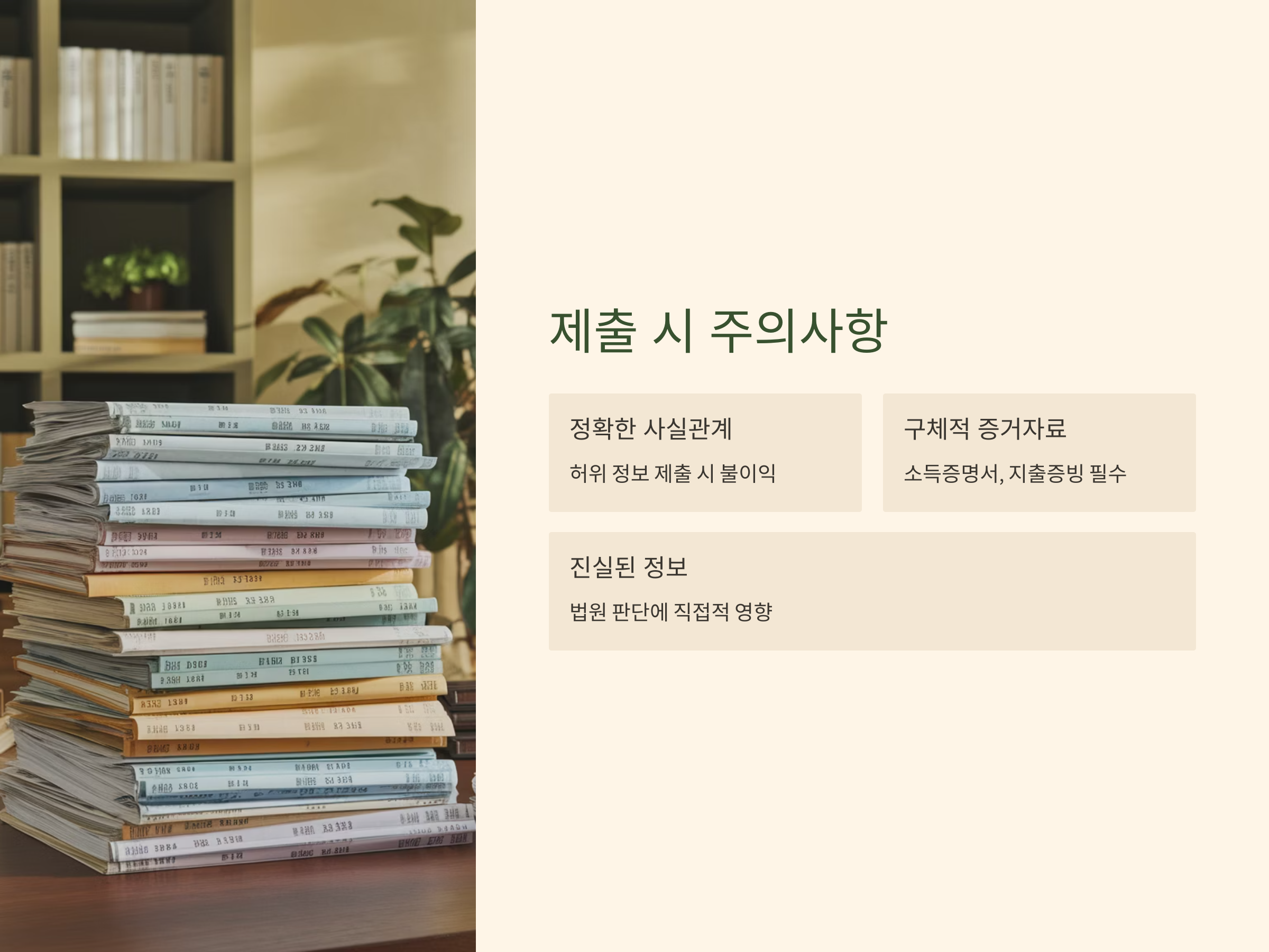 생활비나 기타 지출을 증명할 수 있는 영수증, 통장 내역서 등을 제출하여 경제적인 어려움을 입증해야 합니다.
