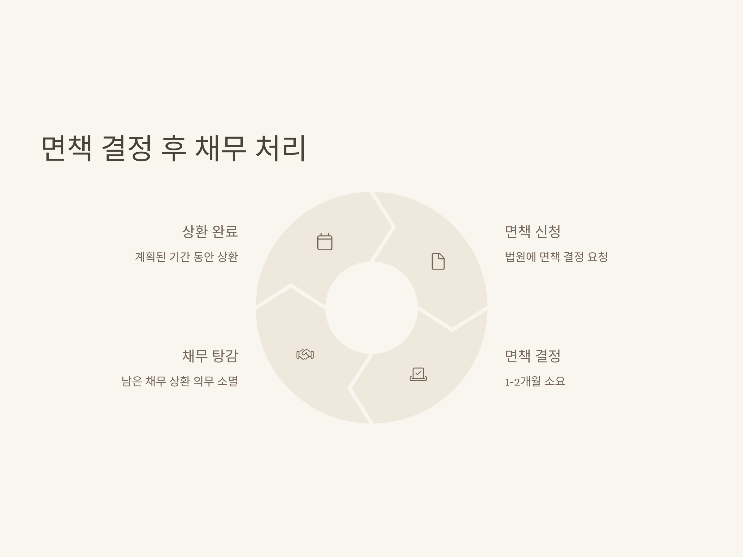 상환 기간이 종료되면, 법원은 면책 결정을 내리게 됩니다. 면책 결정이 내려지면, 채무자는 남아 있는 채무를 더 이상 갚을 필요가 없게 됩니다. 면책 결정을 받기까지의 시간은 상환 기간이 끝난 후 약 1개월에서 2개월 정도 소요될 수 있습니다.