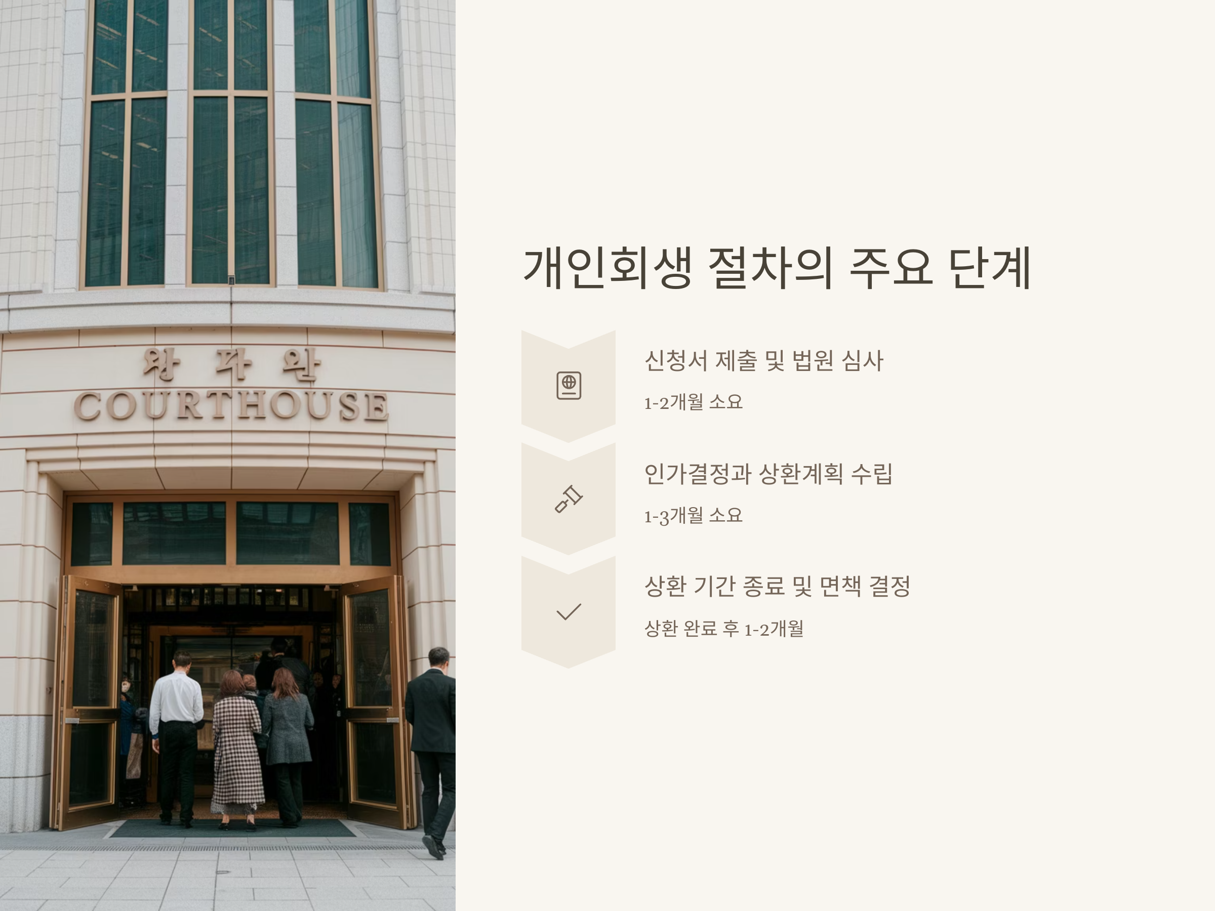 개인회생 절차는 크게 세 가지 단계로 나누어집니다. 첫 번째 단계는 신청서 제출 및 법원 심사, 두 번째는 인가결정과 상환계획 수립, 세 번째는 상환 기간 종료 및 면책 결정입니다. 각 단계의 소요 시간이 다르고, 그에 따라 전체 절차에 걸리는 시간도 달라집니다.