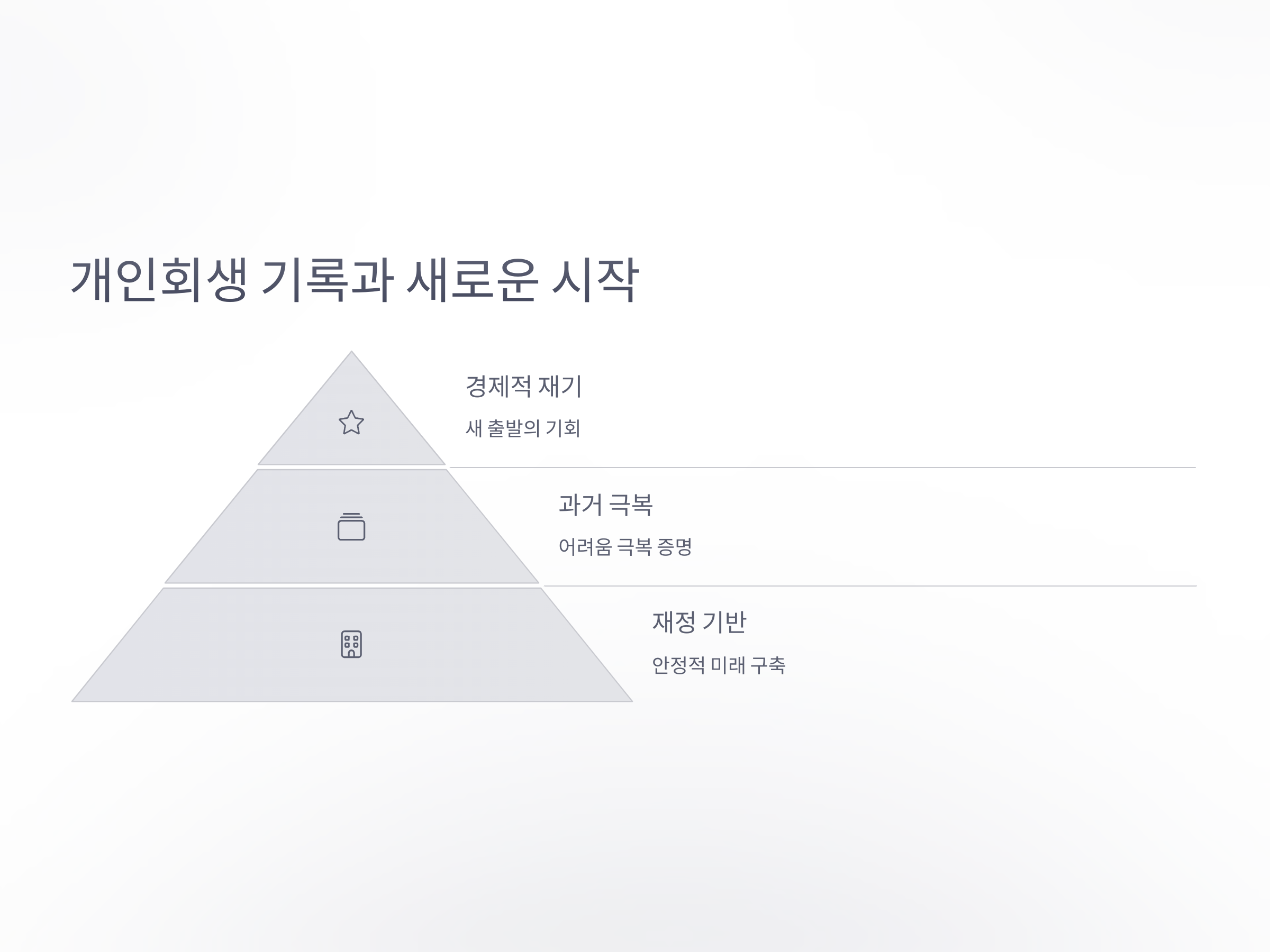 개인회생 기록은 그 자체로 부정적인 의미를 가진 것이 아니라, 경제적 재기의 출발점을 의미하는 중요한 기록입니다. 이 기록은 채무자가 과거의 경제적 어려움을 극복하고 새로운 시작을 할 수 있는 기회를 제공하는 중요한 자료입니다. 비록 개인회생 절차가 완료된 후에는 일정 기간 동안 신용에 부정적인 영향을 미칠 수 있지만, 꾸준한 재정 관리와 성실한 상환을 통해 그 영향은 점차 사라집니다.