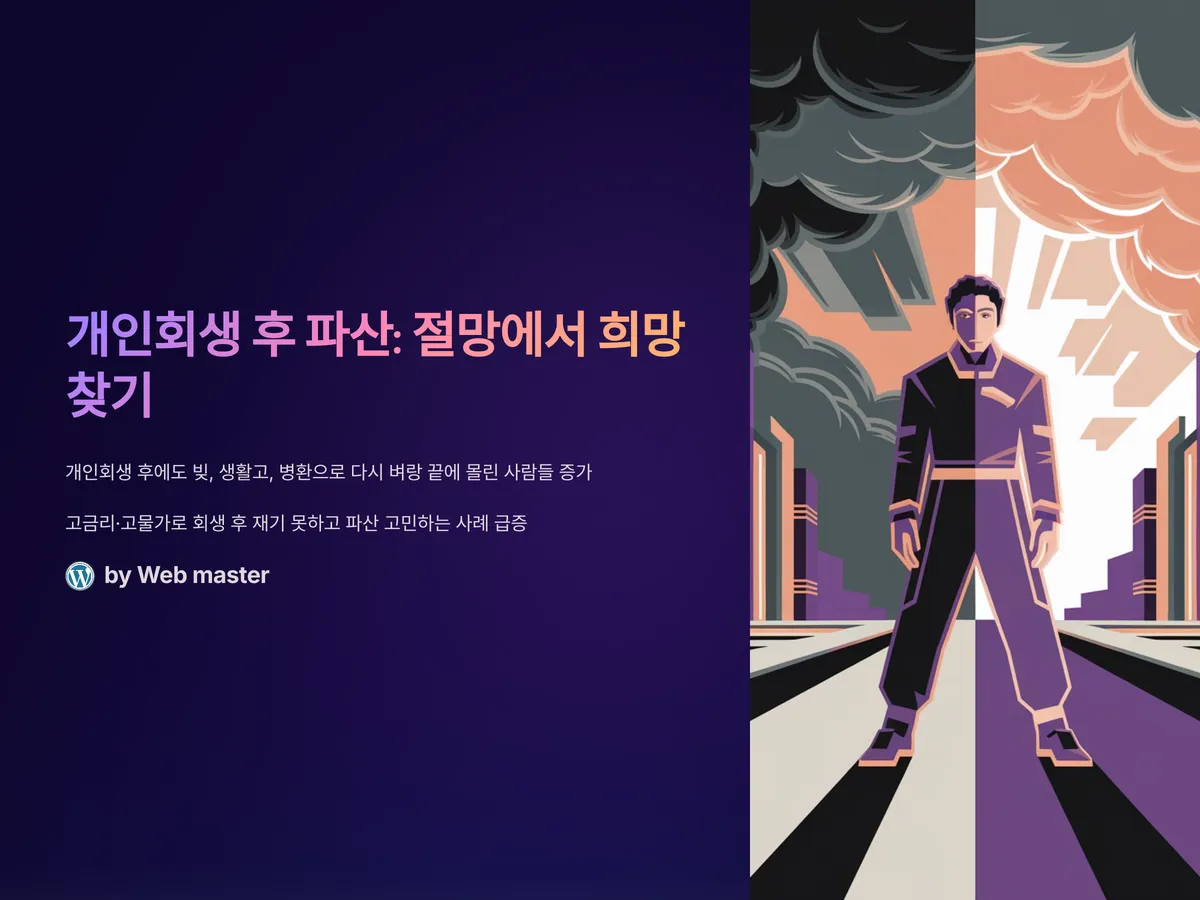 개인회생을 어렵게 마친 후에도 남은 빚, 생활고, 병환 등으로 다시 벼랑 끝에 몰린 사람들이 증가하고 있습니다. 특히 최근 고금리·고물가 상황이 지속되면서 회생 후 재기하지 못한 채 파산까지 고민하는 사례가 많아졌습니다. 2024년 서울회생법원 통계에 따르면, 개인회생 종료 1년 내 파산 신청이 급증하고 있는 것으로 나타났으며, 이는 소득불균형과 일자리 불안정이 주요 원인으로 지목되고 있습니다. 결국 “한 번 살려달라고 했는데, 다시 두드려도 될까?”라는 간절한 질문이 생기는 것이죠.