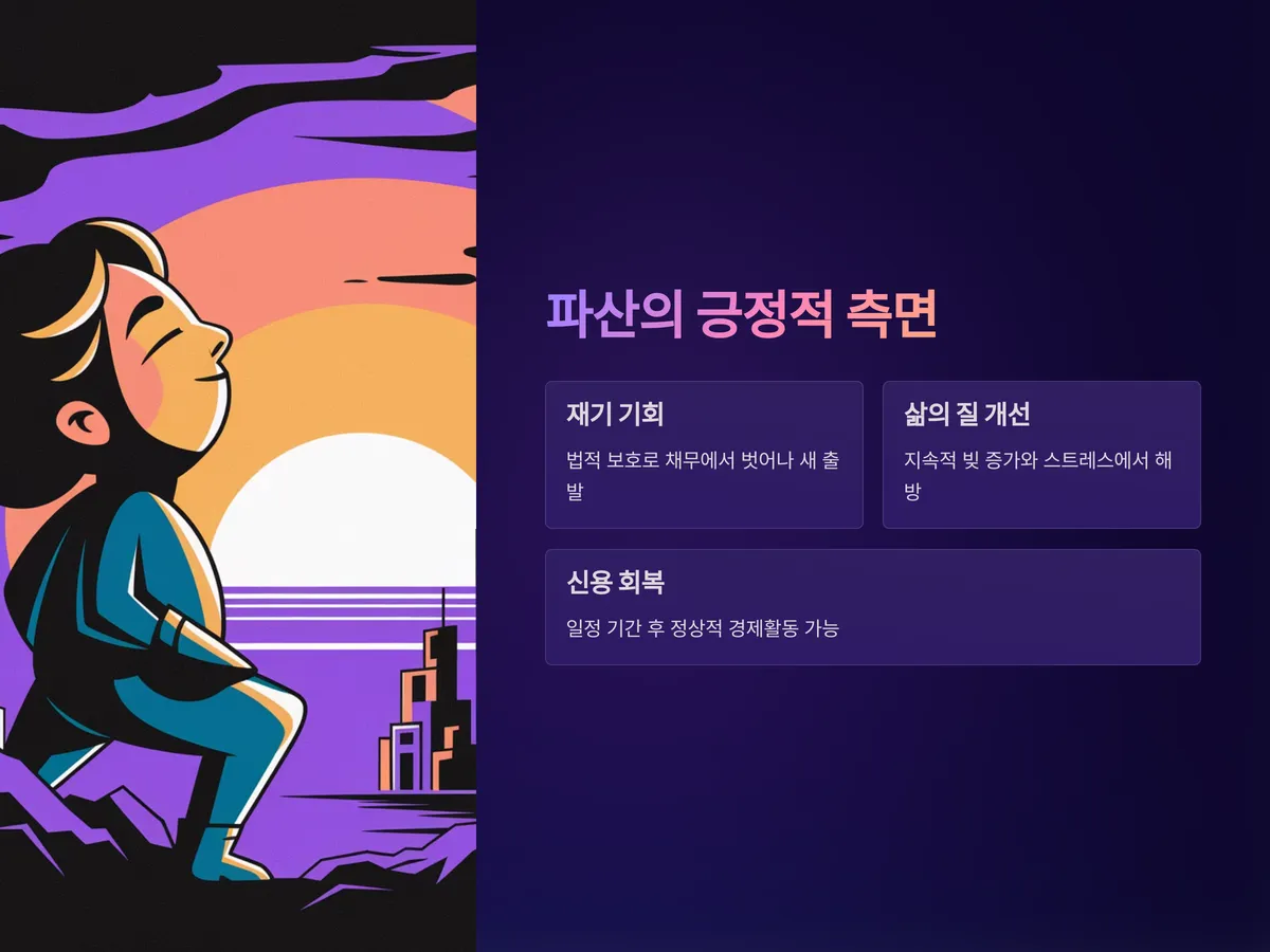 또한 파산 후 일정기간 금융거래 제한 등의 불이익이 있지만, 이는 면책 이후 일정 기간이 지나면 자연스럽게 회복됩니다. 이를 두려워해 무리한 채무를 계속 안고 가는 것이 더 위험할 수 있습니다.
