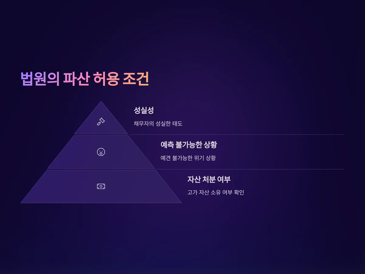 법원은 ‘개인회생 후 파산’을 엄격하게 판단합니다. 단순히 빚이 많다고 파산이 인정되는 건 아닙니다. 중요한 기준은 바로 채무자의 ‘성실성’과 ‘예측 불가능한 상황’입니다.