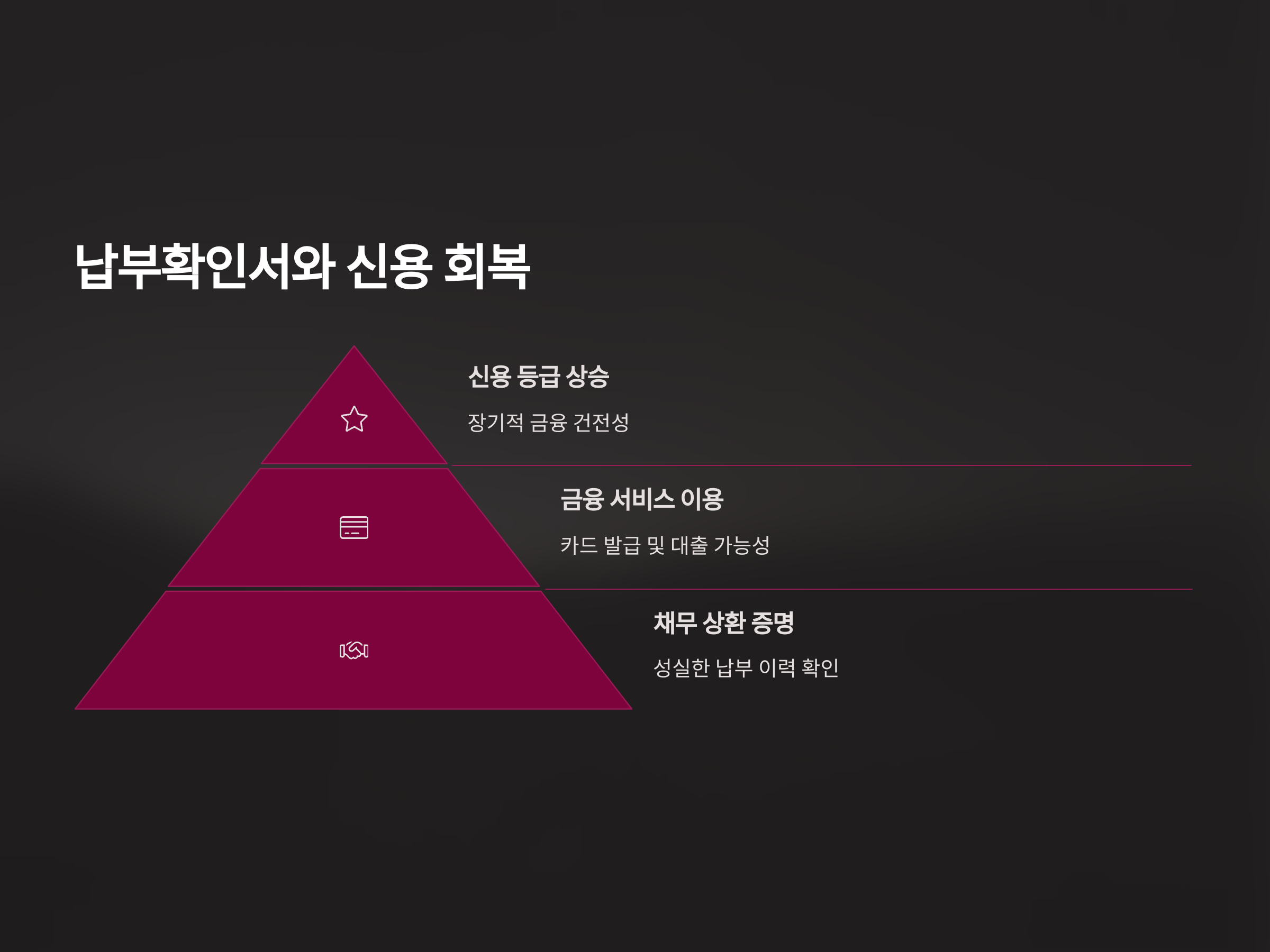납부확인서를 발급받기 위한 절차는 간단하지만, 납부 내역의 정확성을 확인하고, 발급 기한을 놓치지 않도록 주의해야 합니다. 이를 통해 채무자는 신용 회복의 기회를 더욱 효과적으로 활용할 수 있습니다.
